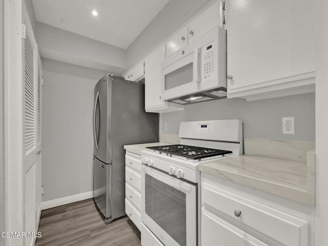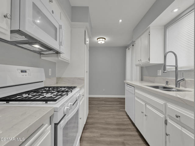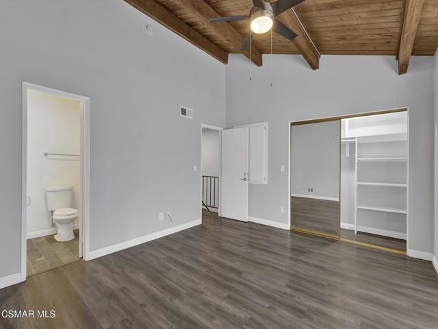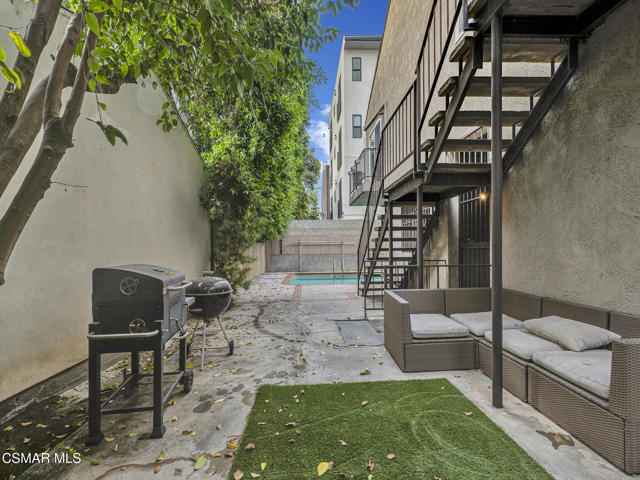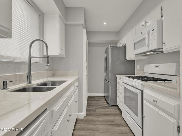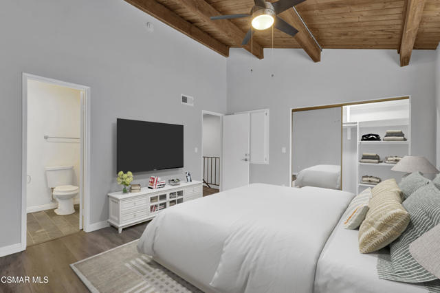 Spectacularly quaint, quiet and charming complexes are rarely found. Step through the gates into the unique and lovely common courtyard. Recently updated and modernized throughout. A cozy fireplace welcomes you to the bright, spacious living room with wood type laminate flooring leading into a sizable, private patio perfect for relaxation, BBQs and entertaining. Remodeled downstairs powder bath with new fixtures, commode, sink. Kitchen features a new range, stone type counters, fixtures, sink, updated and much more. Built in microwave and updated cabinets sparkle. Kitchen breakfast nook area and plenty of storage. Includes refrigerator. In-unit laundry includes washer and dryer. Two upstairs primary suites, one with a stately wood beamed ceiling and fan, both ensuite baths are updated with new fixtures, shower glass, stone type counters and much more. Both bedrooms have ample storage and spacious closets. This is the home you have been searching for! Warm, welcoming and awaiting its new owner!