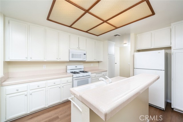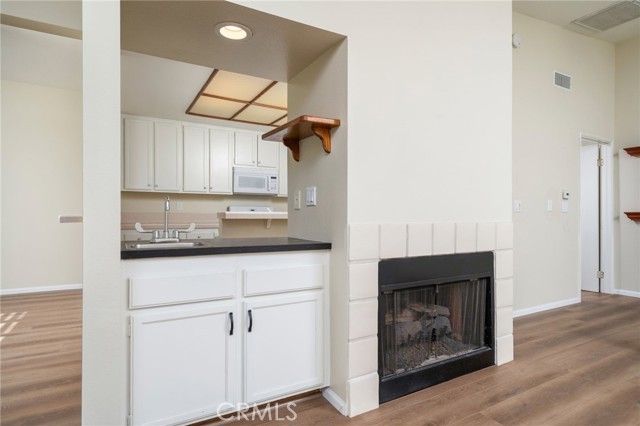 Turnkey end unit townhome located in quiet San Dimas complex. This beautiful townhome features two spacious bedrooms and 2.5 bathrooms with 1,502 SF of living space. Enjoy the double door entry and open floor plan with welcoming living room with vinyl flooring and cozy fireplace, wet bar, and slider door to outside balcony, open kitchen with center island, ample cabinet and counter space, gas range, microwave, dishwasher, refrigerator, and adjacent kitchen dining area with slider door to outside balcony. Also on the main level you have a powder room for your guests. Downstairs features two spacious bedrooms both with their own bathrooms, including a primary suite with a two closets, one is a walk-in closet, and bathroom with dual sink vanity and a separate tub/shower. Two car attached garage with direct access into house and laundry hook ups including a washer and dryer. There is a adjacent extra parking space next to the garage. Community features a pool and spa that is located close to this townhome. Located close to Old Town San Dimas with quaint shops, restaurants, and easy freeway access.