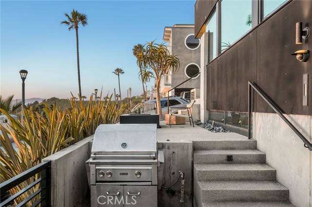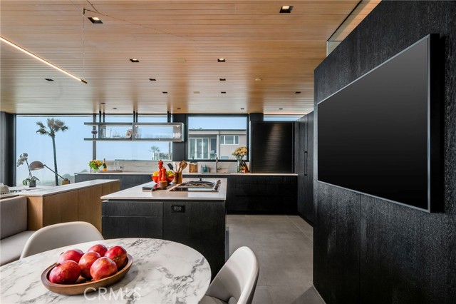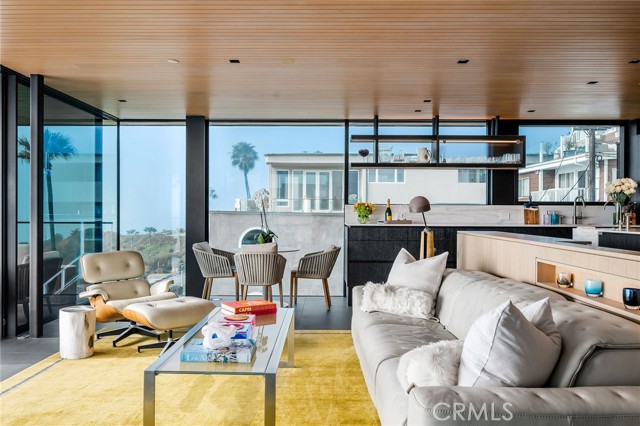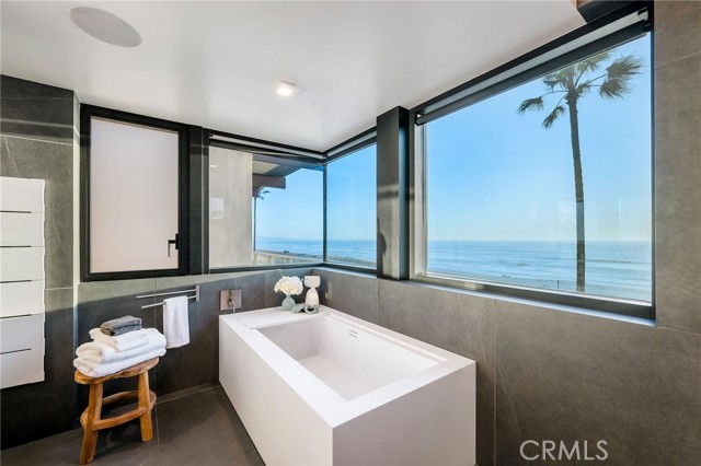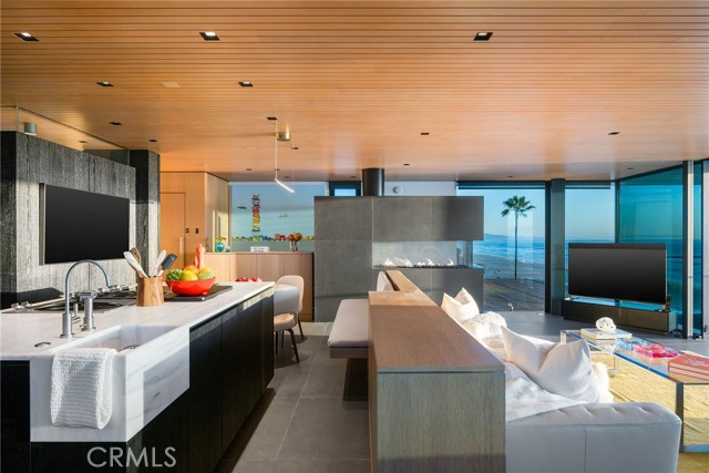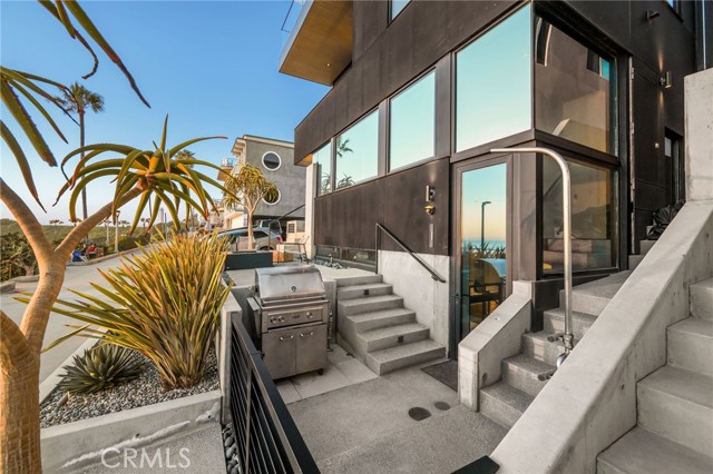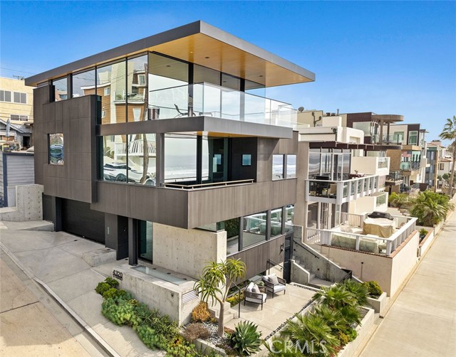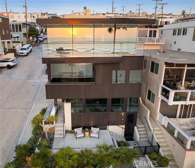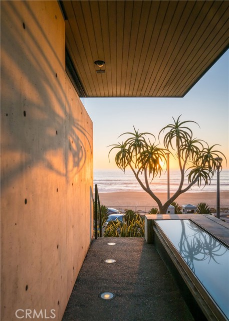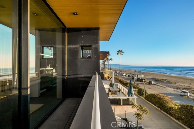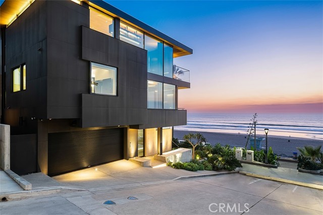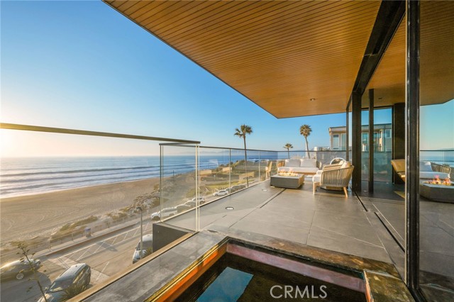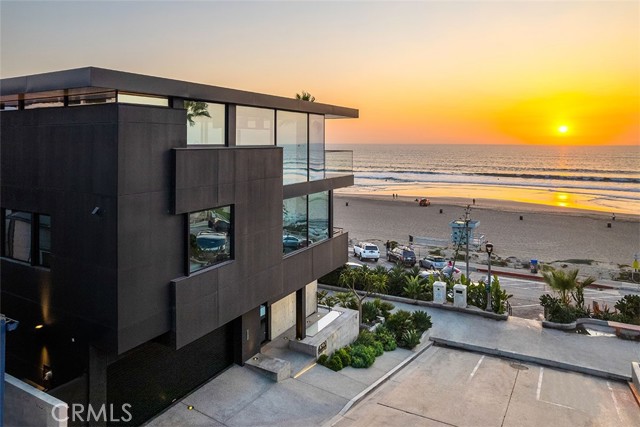 In dreaming, designing, and executing this truly irreplaceable 5-story oceanfront property by Michael Lee Architects, all elements have been expertly woven together into the ultimate representation of absolute perfection. Earth, air, fire and water stand in a visionary blend of architecture, function, and timeless presence forever making a unique statement along one of the most sought after stretches of coastline in the world. The facade is bold and beautiful, dressed in durable micro-layered Richlite wood and R100 privacy glass, then subtly trimmed in steel. Sitting proudly overlooking expansive views of the horizon which stretch from Palos Verdes and Catalina to the Malibu coastline. Watch endless world-class surf in El Porto from one of the very best vantage points in all of Manhattan Beach - the private, open concept living room perched high above the Strand. Walls of floor-to-ceiling glass capture the shifting moods of the ocean presenting a different backdrop almost hourly. Open the room-height German-made Schüco 77 sliding doors to welcome the ocean air and expand the living area onto the deck beyond, where you can enjoy dramatic sunsets while soaking in your solid copper spa! The modern kitchen is outfitted with a full suite of premium appliance brands: Gaggenau, SubZero and Meile. Pantry shelving and appliance storage options are expertly designed right into the sleek cabinetry custom made by Design Support Woodworking. A 3-sided glass Ortal fireplace expands views of the ocean while seated at the custom built-in dining table. The master suite showcases front-and center views, blackout curtains, and switch glass in the master bath. Dramatic and discreet up and downlighting is used extensively throughout. This custom home holds numerous surprises, such as a media room with nearly 20 foot ceilings, a 2-story green wall and koi pond, top of the line Crestron automation, a four-stop, Italian-made glass and steel elevator from Elevator Boutique, 6 zone HVAC, full interior walk-in surf shower, a car lift-ready garage, a whole house water filtration + three 17 stage reverse osmosis systems, and radiant heat on all 5 floors, as well as both the master balcony and the top floor balcony decks. An innovative home office features a custom sit-stand desk with a large glass black board. Guests benefit from plenty of bonus parking nearby. Walk down the steps from the Strand onto the beach and straight out to some of the best surf in Southern California!