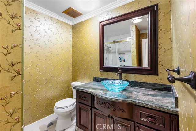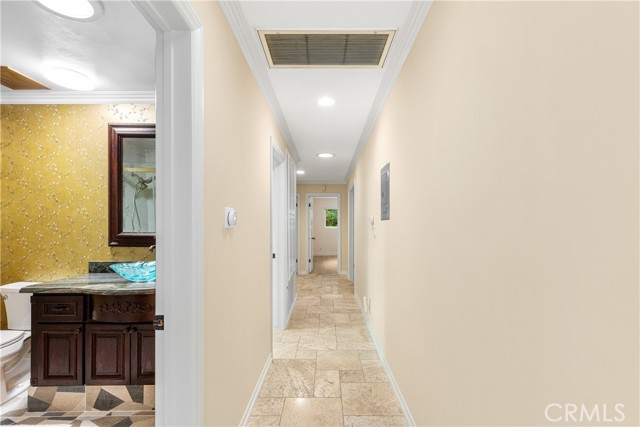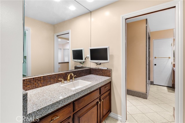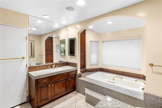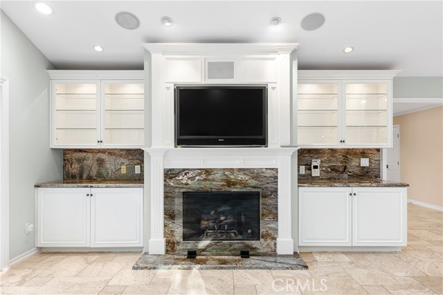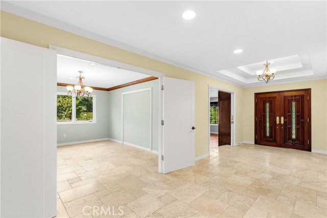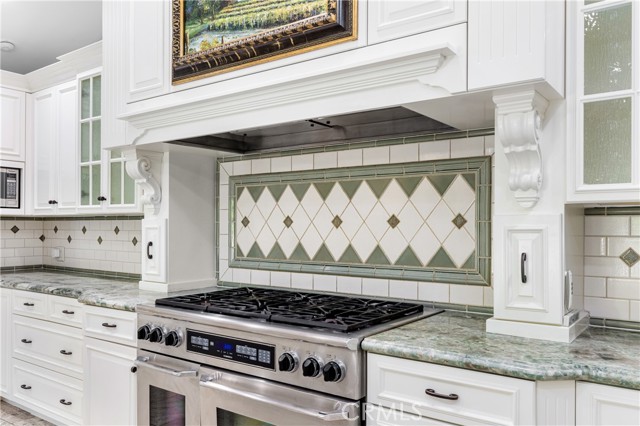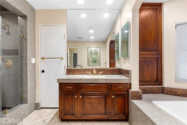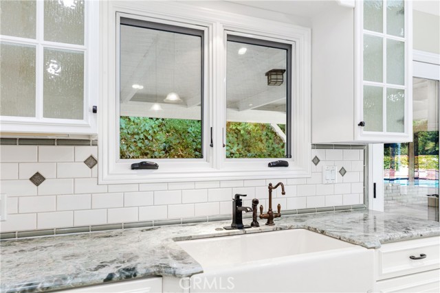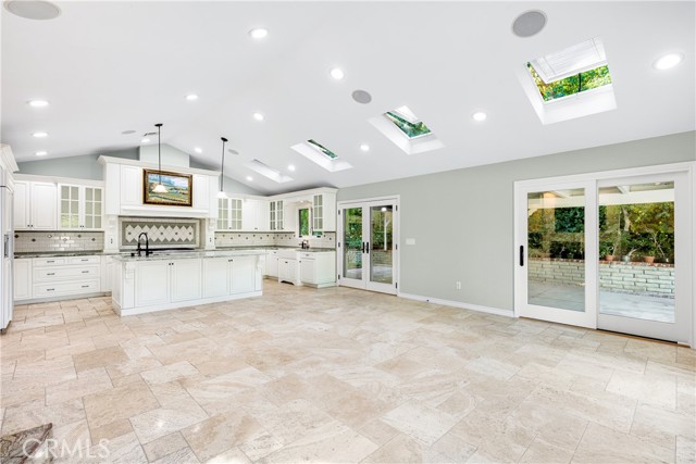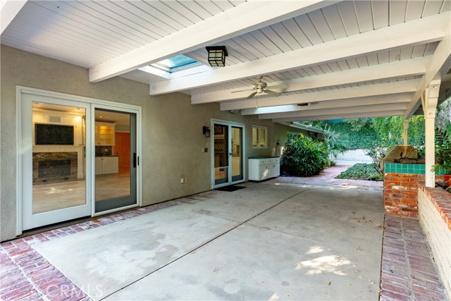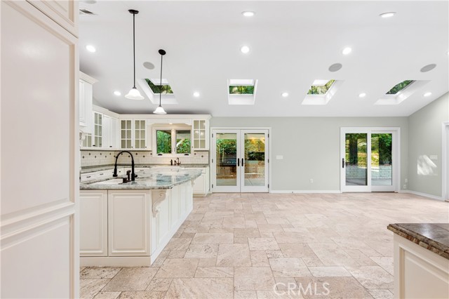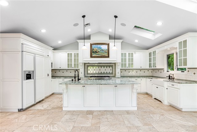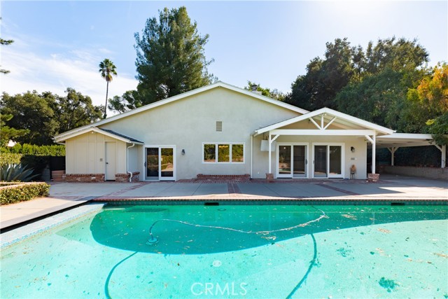 Set above the street on an exclusive cul-de-sac in Encino south, is this remodeled 4BR Traditional gem. Spanning a lot incorporating over 17,000 sq ft per assessor, this amazing property is tailor made for entertaining. A large and bright foyer/gallery, ideal for art, greets you as you enter, and leads to a spacious step-down living room/media room, including wood floors, a built-in entertainment unit, and a picturesque French window. The oversized formal dining room features custom wood crown moldings and a built-in china cabinet with elegant wood and beveled-glass accents. The focal point of the home is the dramatic state-of-the-art skylit kitchen/family room, highlighted by a striking granite center island, an Italian tile backsplash, hand-done cabinetry, 2 sinks, and a Dacor commercial 6-burner range. The family room, overlooking the pool, has a vaulted ceiling, travertine floors, a marble fireplace, and maple wood-built ins. The luxurious primary suite provides dual vanities, a granite and mosaic shower, a spa tub and walk-in closet. All the secondary bedrooms are abundant in size and have mirrored wardrobes. The private and expansive back yard is comprised of a sparkling brick-laced Pebble Tec pool, green, multiple patios, and hill views. An added bonus is the 3-car garage with an array of built-ins. Minutes to Ventura Blvd and its many vibrant dining and shopping options.
