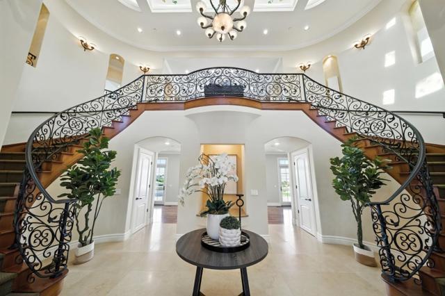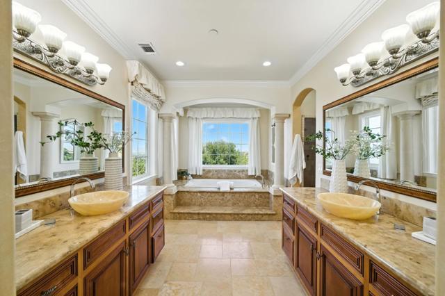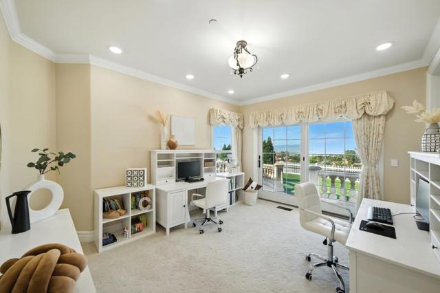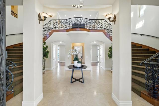 Extraordinary Mediterranean Revival estate in coveted Mission Hills, this 8,132 sq.ft. Tuscan-inspired residence sits on 2.7 acres with its own Cabernet vineyard, offering refined living, enduring legacy, and sweeping 360 Degree views of the Bay Area. With symmetry, arched entryways, and a red-tile roofline, this home is a statement of prestige and a timeless retreat. The gated approach leads to a grand foyer with marble floors and dual staircase. Seven bedrooms, six full baths, and two powder rooms are complemented by a theatre, exercise room, executive office/library, and a discreet staircase to the master suite. Formal celebrations span the dining with custom fireplace extending to the backyard with sweeping views, adjacent to a living room alcove perfect for a grand piano. The chef kitchen features cherrywood cabinets, granite island, rare granite sink, and Thermador appliances. Family room offers great views, a grand fireplace, wet bar and wine cellar. The primary suite boasts dual balconies, a spa bath with Jacuzzi, marble vanities, steam shower, sauna, and expansive walk-in. Manicured grounds, vineyard rows, and panoramic views of city lights, Bay bridges, and Mission Hills complete this rare estate blending architectural distinction, privacy, and generational value.