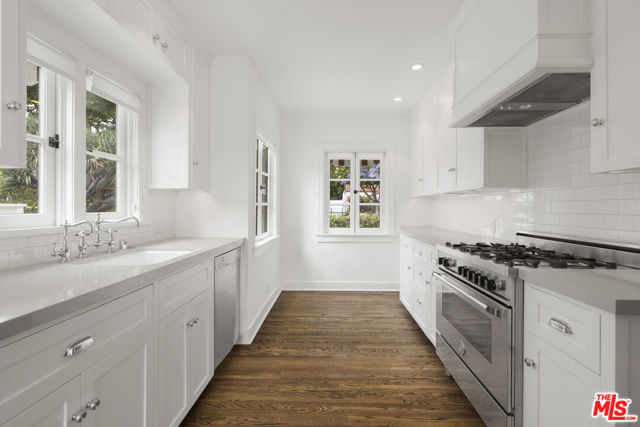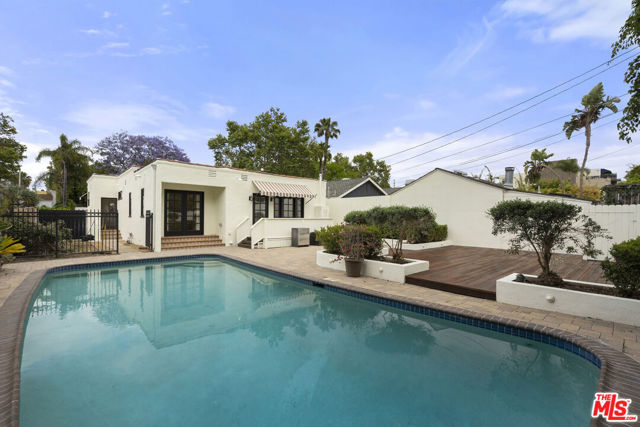 This adorable Spanish-style home is a perfect lease! Recently fully renovated, beautiful interior, gorgeous hardwood floors, huge master suite that opens out to the backyard. Two add'l bedrooms, side by side laundry. Fireplace decorative only. Large pool and great entertaining deck. Amazing area, just down from Urth Cafe; to enjoy the best of West Hollywood's outdoor living! Unfurnished, available immediately.