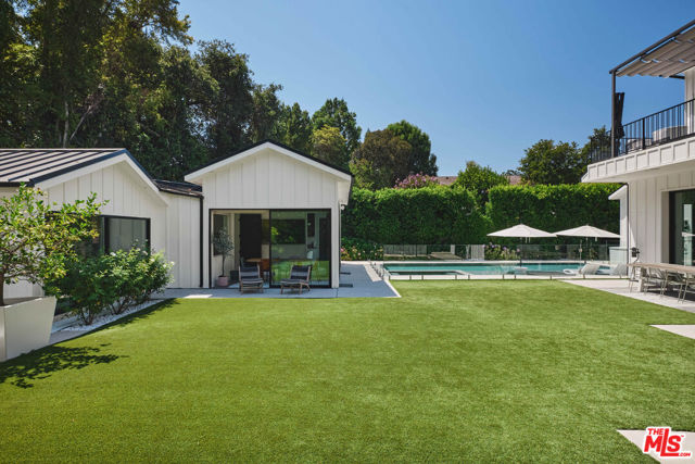 Behind private gates in one of Encino's most coveted enclaves, 4634 White Oak Avenue is a custom-designed estate blending grand scale with refined detail. A chandelier-crowned foyer and sweeping staircase introduce interiors designed for both statement and comfort. The chef's kitchen, anchored by dual islands, bespoke cabinetry, and designer appliances, flows to formal and casual living spaces, each opening through pocketing glass doors to a resort-worthy backyard. Here, lush landscaping frames a zero-edge pool and spa, sports court, outdoor kitchen, and multiple dining terraces. A theater, guest suite, and office complete the main level, while the upper floor reveals a primary sanctuary with fireplace, private balcony, dual walk-in closets, and a spa-like bath. Additional ensuite bedrooms, smart-home technology, a three-car garage, and a fully finished two-bedroom guest house with kitchenette make this estate as functional as it is an expression of refined California living. GUEST HOUSE: includes kitchen, full bathroom, dining room, 2 office/bedrooms, and large bonus play area.