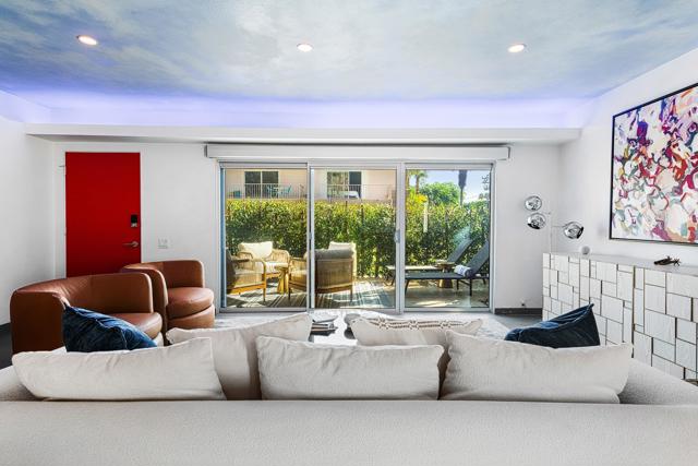 Hidden Gem in the Historic Tennis ClubTucked in one of Palm Springs' most desirable neighborhoods, this single-story condo is the perfect blend of mid-century design and modern luxury. Originally crafted by renowned architect Herbert Burns, the home showcases his iconic style while offering today's most sought-after upgrades--all just one block from downtown.Inside, an open and airy living space features custom cabinetry in the kitchen and bath, sleek modern flooring, and designer finishes throughout. Remote-controlled windows and doors shift from privacy to open views at the touch of a button, while adjustable recessed lighting sets the perfect mood.It is the only unit with direct entry from its assigned off-street parking space, where you'll find your own electric car charger tucked neatly into the outdoor storage closet.Step outside to a spacious patio with sparkling pool and spa views, ideal for both relaxing and entertaining.Move-in ready and designed for effortless desert living, this sophisticated retreat is truly one of a kind.
