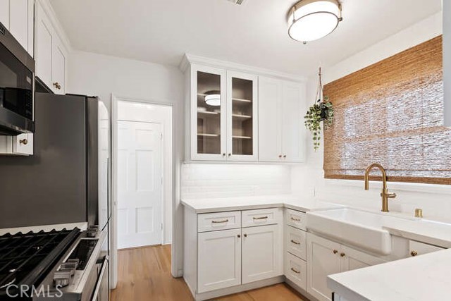 Charming Condo in Santa Monica’s Prestigious North of Montana. Welcome to a residence that truly checks all the right boxes in one of Santa Monica’s most desirable neighborhoods. Located North of Montana, just a short stroll from the bluffs and the iconic Palisades Beach Park stairs, this second-floor 1-bedroom, 1-bathroom unit offers an unmatched combination of location, charm, and lifestyle. Nestled in a serene horseshoe, double-lot configuration around a lush central courtyard, this home is a tranquil retreat. The large picture window in the living area perfectly frames the verdant courtyard, filling the space with light and a sense of calm. Gorgeous hardwood floors flow throughout the open floor plan, creating a warm and inviting atmosphere, while plaster walls, original crown molding, and a spacious walk-in closet elevate the timeless appeal. The newer cook’s kitchen is a standout feature, thoughtfully designed for both style and functionality, making it a pleasure to prepare meals. Laundry inside unit. Authentic period details have been lovingly preserved, ensuring the home retains its historic charm without the intrusion of unnecessary modernizations. This rare find in a premier location combines classic elegance with the convenience of being just moments from Santa Monica's