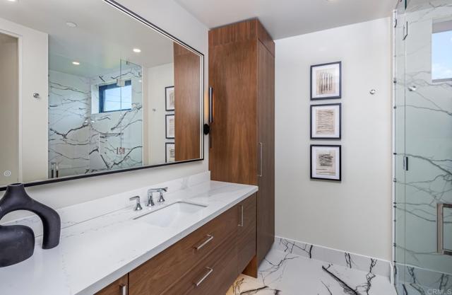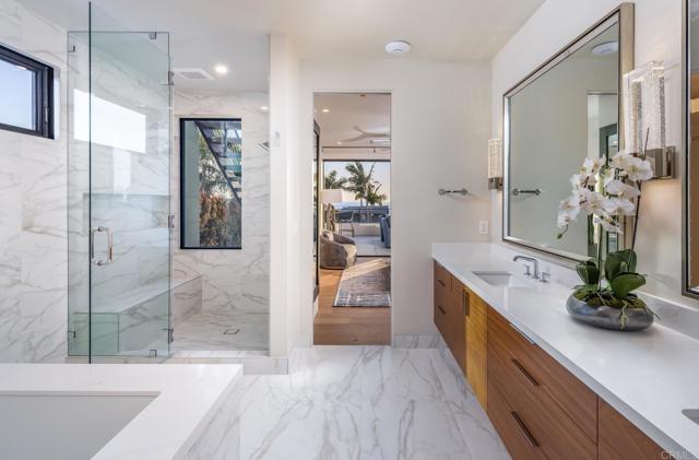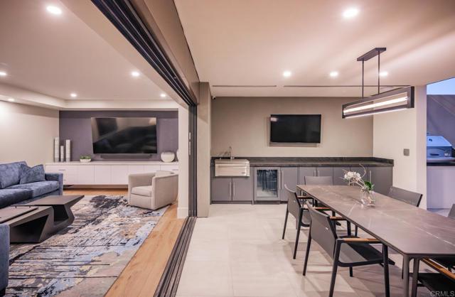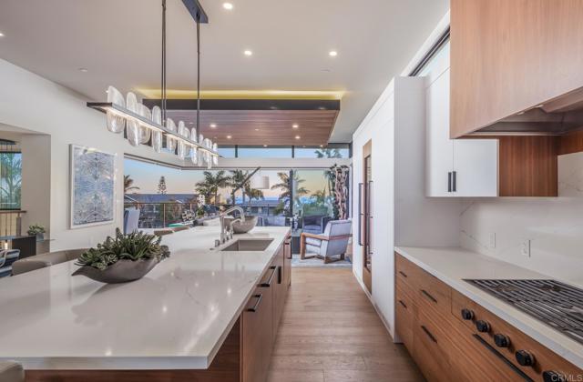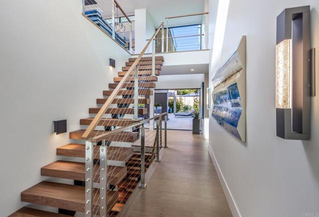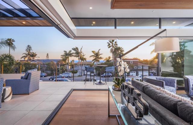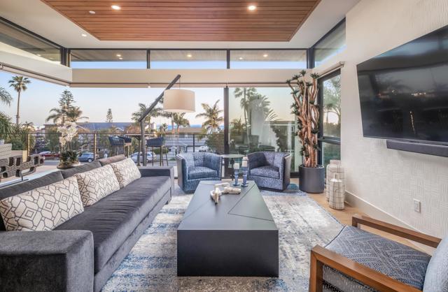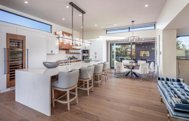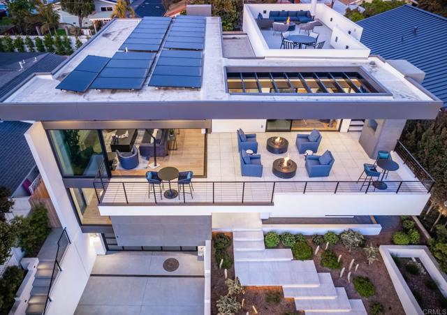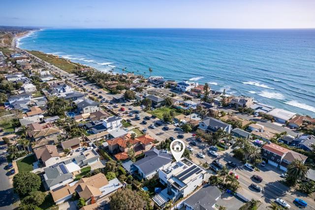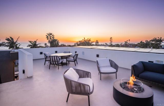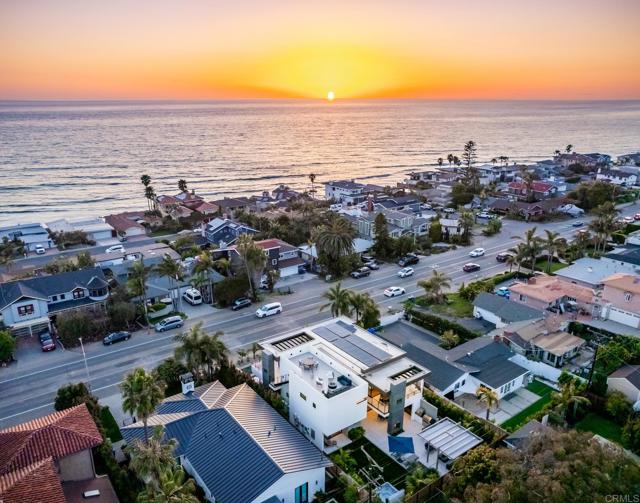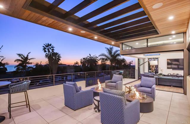 The crown jewel of Terramar, a striking, modern coastal retreat just steps from the sand. From the moment you step inside, the home’s elevated architecture and contemporary palette of blues, creams, and grays set the tone for refined beachside living. Every detail speaks of craftsmanship and cutting-edge luxury. This newly constructed 4 bed, 4.5 bath, 3,925 SF masterpiece was imagined as the tallest home on the street, thoughtfully designed across three levels plus a rooftop deck to fully capture panoramic ocean views. The community of Terramar comes with its own private beach access, The Landing, the biggest bonus for the new owner of this magnificent estate, offering an exclusive way to enjoy the coastal lifestyle just steps away. A sleek Savaria Eclipse Residential Elevator connects every floor, offering effortless access from the private garage to the top level, a true blend of convenience and sophistication. The entry level boasts three impeccably designed bedrooms, three full baths, and a family room that opens seamlessly to the backyard, an entertainer’s dream complete with a custom outdoor kitchen with Lynx pizza oven and 42” grill, bistro island, designer fire pit table, Kannoa Motion Cabana with retractable awning, hot tub, and outdoor shower, all framed by water-conserving landscaping and artistic lighting. The main living space and the heart of the home is located on the top floor to maximize ocean views and includes a showstopping kitchen outfitted with Wolf and Subzero appliances, dual Asko dishwashers, a full-size wine fridge, and striking walnut and white cabinetry. The kitchen flows seamlessly into the dining nook and ocean-facing great room, where doors vanish to reveal a vast deck, your front-row seat to nightly sunsets. Located in its own private wing, the luxurious ocean-view primary suite offers an elevated retreat with a spa-inspired bath, a stylish powder room, and direct access to the rear deck and the outdoor entertaining area below. The lower level includes a finished 4-car garage with EV charging, a private wine cellar with 160+ bottle capacity, and access to smart home systems. Sustainable and smart, the home features owned Enphase solar with monitoring system, water-conserving landscaping, security cameras, Kumo Touch thermostats, myQ garage access, and high-efficiency HVAC systems. A highlighted feature is the complete Control4 system with lighting, Lutron Palladiom Motorized Roller Shades, distributed audio, security, and surround sound integrated into one app. This is more than a home. It’s a statement of lifestyle, where every detail was curated for coastal elegance, smart functionality, and unforgettable entertaining.