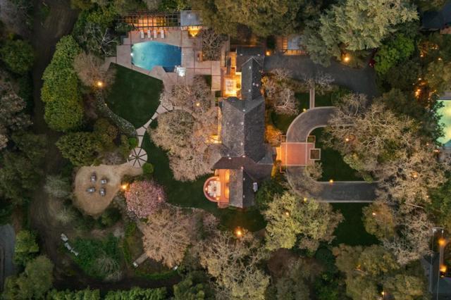 This exceptional Atherton estate sits on approximately 2.1 acres of magnificent grounds - a rare offering in a town where most homes occupy roughly one acre. Set beyond a private gated entrance & positioned well back from the street, a long driveway leads to the stately 1930s Tudor Revival residence with circular motor court & classic architectural details. The home spans approximately 5,970 square feet & offers 6 bedrooms plus an executive office, 4 full baths & 2 powder baths. Grand living spaces include a formal living room with soaring beam ceilings, fireplace & large picture windows that draw the surrounding landscape indoors. The refreshed kitchen features marble countertops, abundant cabinetry & top appliances. Luxurious primary suite with spacious updated bath. Towering oaks frame sweeping lawns, while a pool, spa & multiple terraces create inviting outdoor living & entertaining spaces. Located within Menlo Park school district & just minutes from Stanford University & major tech campuses including Meta, Google & Apple. Offered for the first time in more than 60 years, properties of this size & presence seldom become available, making this a true legacy offering for a discerning buyer seeking both privacy & permanence in one of Silicon Valley's most coveted settings.