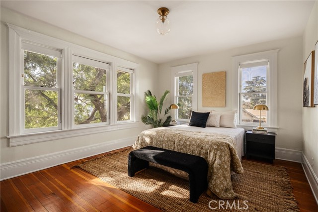 5301 Abbott Place, a one-of-a-kind, historic 2-story American Foursquare in Highland Park. Built in 1904 and lovingly preserved under the Mills Act, this home blends century-old character with fresh, modern ease. Original hardwood floors, antique fixtures, and sunlit rooms looking out to sweeping vistas of the Northeast LA hills and towering green canopies. Set on a rare, nearly 11,000 sq. ft. double lot, the property feels like its own private hilltop haven—wide grassy lawns, herb-filled garden boxes, shaded patios, and open spaces meant for gathering, playing, and lingering. The 4-bedroom, 3-bath main home is complemented by a separate guest house perched above the detached garage. Ideal for guests, extended family, a studio, or a secluded workspace. Plenty of private parking behind the custom electric gate. Situated between the vibrant pulse of Fig and the eclectic charm of Adams, this estate stands as one of Highland Park’s most exceptional offerings—rich in history, alive with beauty, and ready to be cherished for generations.