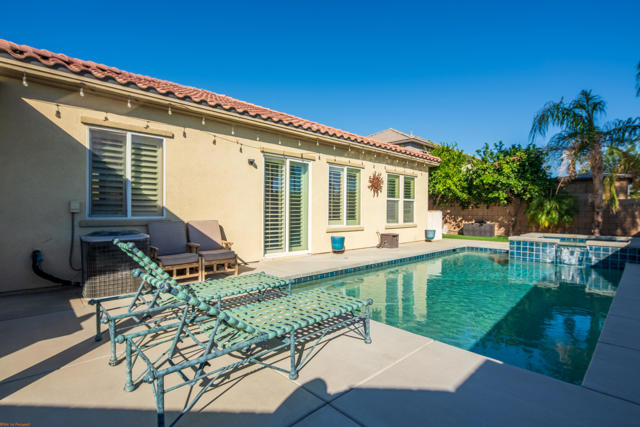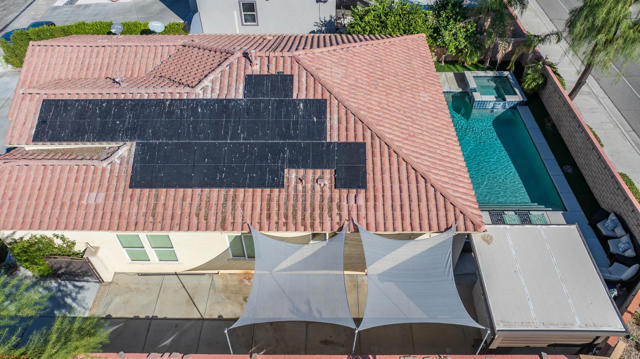 Beautiful semi-custom corner home featuring 10-ft ceilings, tall kitchen cabinets and doors, custom paint, and a gated side entry. Upgraded tile flooring throughout, plantation shutters, and professionally landscaped front and back yards. Property includes owned solar panels, a salt water pool and spa, built-in BBQ area, and a side driveway with RV/trailer access. Newly replaced garage door and Concrete on both sides of the home. Located near Augustine Casino. Perfect corner-lot entertainer's home! For a faster response, please call or text the agent with any questions.