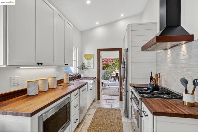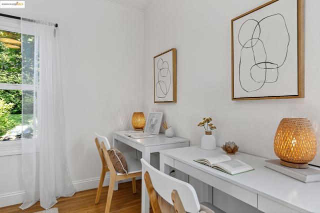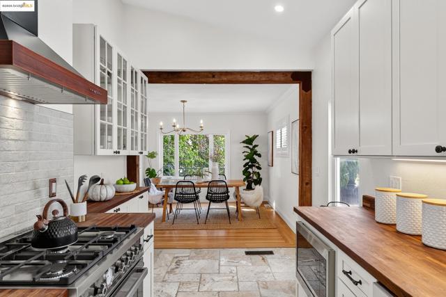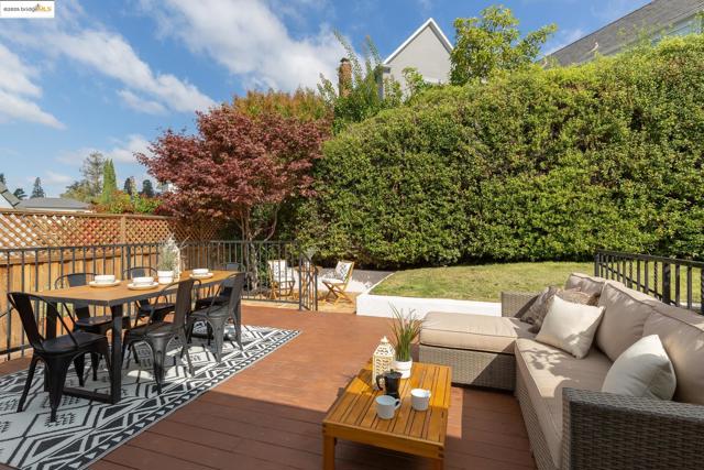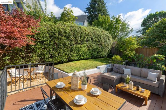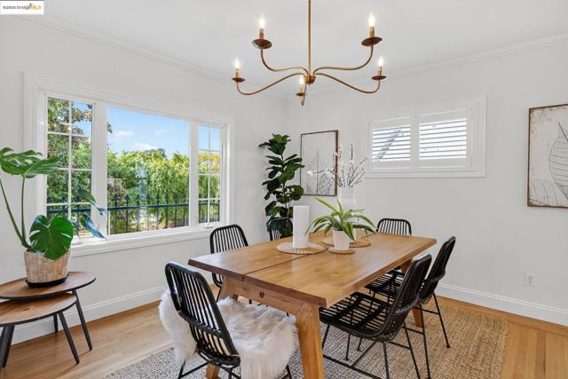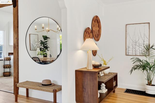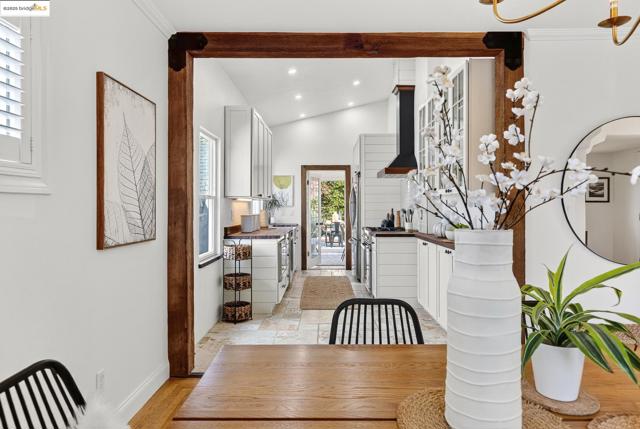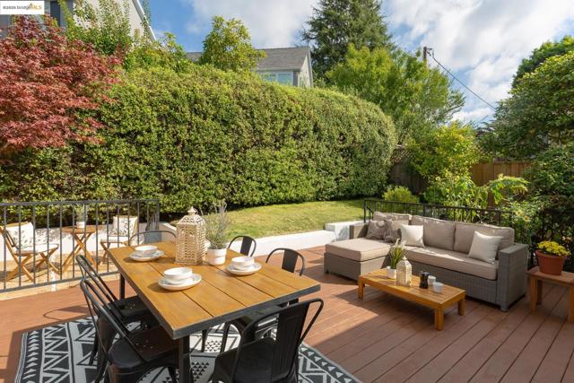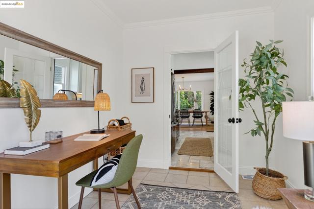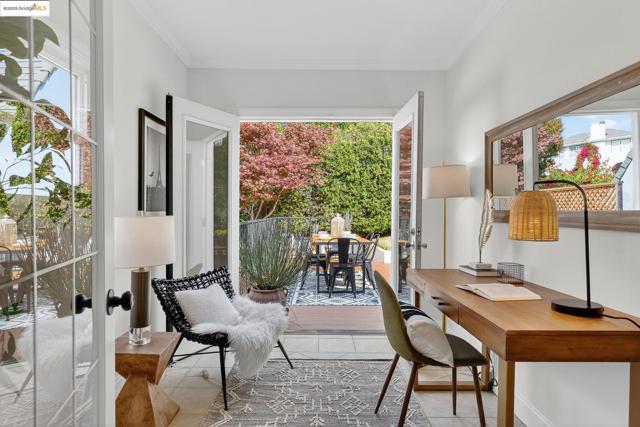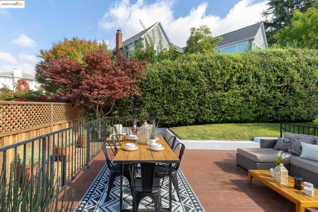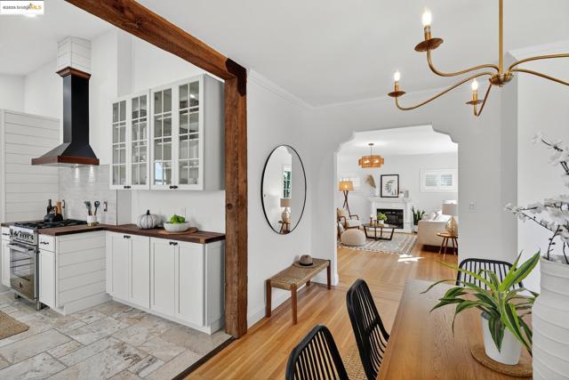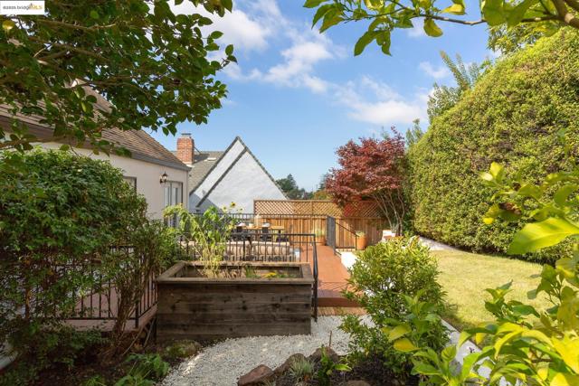 Located on a tree-lined street in the desirable Crocker Highlands neighborhood, this enchanting storybook Tudor combines timeless period charm with modern updates. The lovely home features an inviting light-filled living room with a large picture window & fireplace & a formal dining room that connects seamlessly to the thoughtfully renovated kitchen. The gorgeous chef’s kitchen boasts vaulted ceilings, beautiful cabinetry, warm walnut wood butcher block countertops & high-end appliances. Adjacent to the kitchen you will find a flexible bonus room that could be used as an office with doors that open to the delightful garden. The level-out garden features a large deck perfect for entertaining family & friends, a lawn area, stone patio & veggie planter box! Two large bedrooms & two tastefully remodeled bathrooms including the primary en-suite complete this special home. The stylish primary suite provides French doors that open to the private garden. Additional highlights include refinished HWD floors throughout, a spacious laundry room, two-car garage with interior access & lots of storage, lg attic w expansion potential. Primary location across from Crocker Elementary, close to vibrant Lakeshore Avenue shops & top-rated restaurants & Lake Merritt.This true gem is not to be missed!