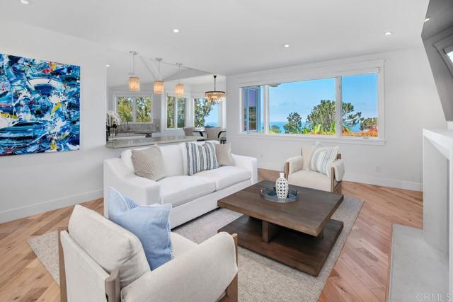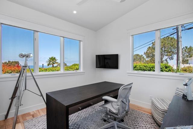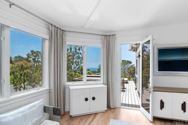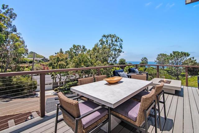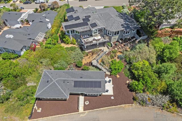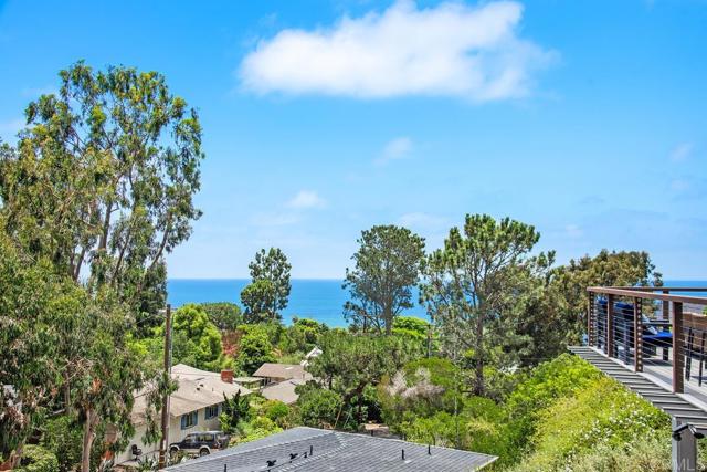 RARE 1/3 ACRE OCEAN VIEW property with Main Residence and Guest House! Commanding more than 180-degree ocean views just above Del Mar Village, this timeless 4,177 sq ft coastal compound embodies refined seaside living. The main residence offers 4 bedrooms and 3.5 baths, thoughtfully designed to capture sweeping vistas from nearly every room—including the kitchen, living room, office, primary suite, and a secondary bedroom. Wrapped in classic shake siding, the exterior exudes understated charm, while the interior is a bright, sunlit haven of relaxed sophistication. Expansive racking doors blur the lines between indoors and out, filling the open-plan living and dining areas with ocean breezes and golden-hour light. The spa-inspired primary suite is a true retreat, with stunning water views, private deck access, and a serene en suite bath. A standout feature of the property is the approx. 1,100 sq ft detached guest house, complete with 2 bedrooms, 2 baths, full kitchen, living area, and its own set of racking doors that open to a private patio—perfect for hosting guests, housing extended family, multi-generational living or producing income. Both the main home and guest house are equipped with solar, emphasizing sustainable luxury. The guest house can be accessed off 11th Street which offers ample parking or from a descending stairs from the main residence. Walking distance to the village of Del Mar where charming shops, top-rated restaurants, iconic beaches and year-round fun await. Make breathtaking sunsets and coastal serenity part of your everyday life—this is Del Mar at its finest.
