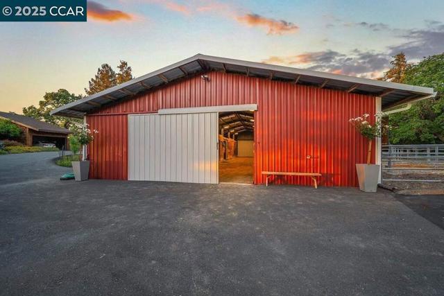 Spectacular Mid-Century Modern Equestrian Estate in Lafayette, set on over ten acres of private land, 575 Morecroft Road is a rare opportunity to own one of Lafayette's most striking properties. With panoramic views across the county and direct trail access to Las Trampas State Park, this property brings together timeless architecture, natural beauty, and an authentic rural lifestyle., yet with all of the amenities of living in the town of Lafayette. Designed by award-winning architect Hirsch Morton, this mid-century modern residence with four bedrooms and three bathrooms is on one level and with views of nature and hills from every window. Soaring ceilings, warm wood finishes, and expansive walls of glass that open the living spaces to the surrounding landscape create a seamless indoor-outdoor flow. An Equestrian's Dream - The Home of Champion Horses and Riders 3,000 sq. ft center-aisle barn with 8 stalls, 8 paddocks, tack room, feed room and storage. A covered and lit round pen (54 diameter) allows for year round exercise in any weather. Fully fenced and cross-fenced pastures. A horseman's paradise with direct access to miles of trails and the open expanses of Las Trampas State Park.