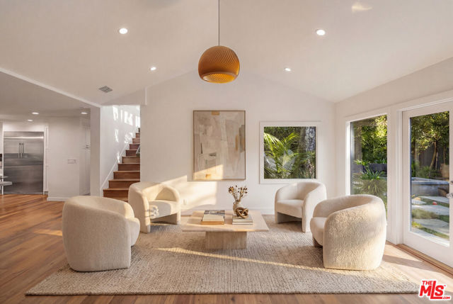 Located on a quiet cul-de-sac in one of the most peaceful pockets of Santa Monica Canyon, this recently renovated contemporary home offers privacy, scale, and effortless indoor-outdoor living on an expansive, flat lot. Set behind gates and surrounded by mature trees, the property feels both secluded and connected to the best of canyon living. The home is filled with natural light, featuring soaring ceilings, walls of glass, and an open, flowing floor plan designed for both everyday living and entertaining. A dramatic entry with a statement staircase leads to spacious living and dining areas, a dedicated office or den, and a chef's kitchen with custom cabinetry and high-end appliances. The kitchen opens seamlessly to the family room, all overlooking the beautifully landscaped backyard. Outdoor spaces are designed for year-round enjoyment, complete with multiple entertaining patios, a fire pit, built-in BBQ, and a pool and spa - all framed by lush greenery for added privacy. Upstairs, the primary suite offers a private retreat with a sitting area, fireplace, dual walk-in closets, and a spa-like bath, along with access to outdoor terraces. Five additional bedrooms and well-appointed living spaces provide flexibility for guests, family, or work-from-home needs. Additional highlights include hardwood floors, French and sliding doors throughout, two staircases, and a direct-access two-car garage. Just moments from the beach, this turnkey property combines the tranquility of canyon living with close proximity to everything the Westside has to offer, all within a close-knit and highly sought-after community.