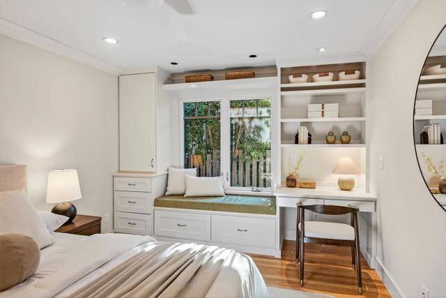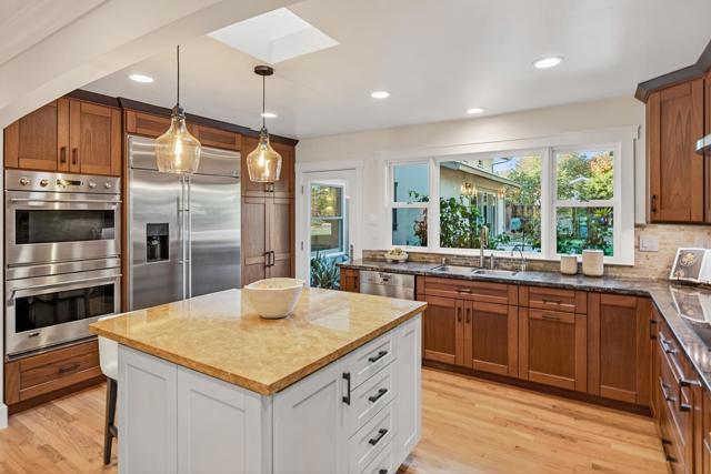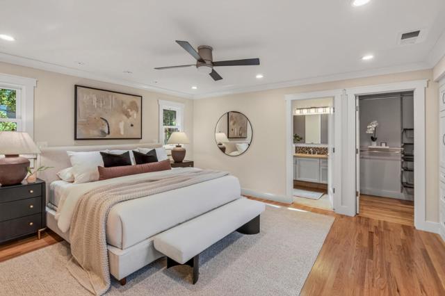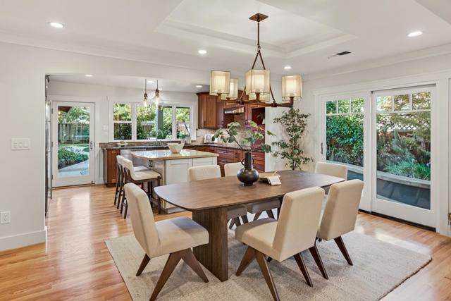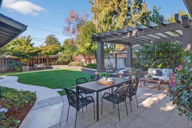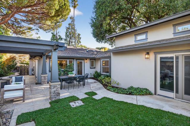 Located in one of Los Altos most idyllic tree-lined neighborhoods moments from downtown, this turn-key Craftsman combines designer style with ideal indoor/outdoor flow. A fenced front yard and covered entrance introduces the homes natural color palette and quality craftsmanship. Inside, gorgeous hardwood floors and abundant natural light highlight the great room design where the living, dining, and kitchen flow seamlessly together. The living room centers around a stacked-stone fireplace flanked by custom built-ins, while the dining room opens to the side patio. The chefs kitchen boasts two-toned granite and marble counters, full-height stone backsplashes, a large center island, and luxe appliances. Four bedrooms include a front-facing bedroom or ideal office, and a serene primary suite with two custom closets and an en suite with a steam shower and heated floors. The backyard oasis features a pergola-covered dining patio, fire pit, water feature, and lush lawn, perfect for entertaining or a quiet retreat. The oversized two-car garage can be used for recreation with a 12 door to the yard and a gate to a private lane at the back of the home. Luxurious California living, in premier Old Los Altos with fabulous shops and restaurants just a few steps away!