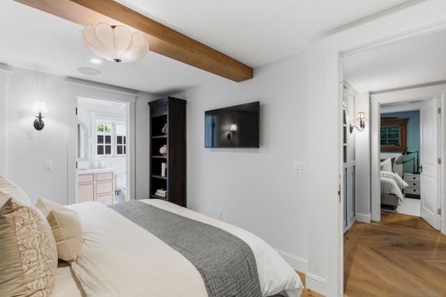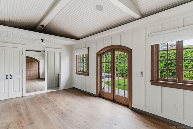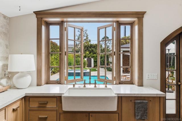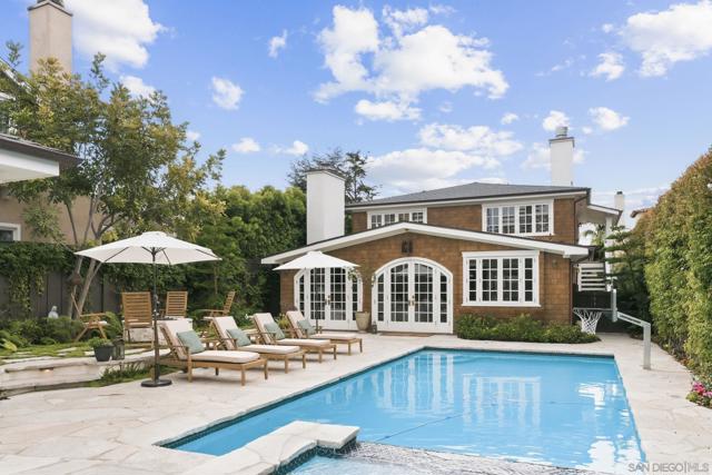Tucked along one of Coronado’s most coveted tree-lined streets, this masterfully reimagined Craftsman blends timeless coastal charm with the confidence of modern construction. Set on a generous 6,400-square-foot lot in a quiet, storybook stretch of the Village, this cedar-sided residence offers a rare sense of privacy, scale, and history, just moments from the beach, parks, and everyday Village life. Rebuilt with intention and taken fully down to the studs during its 2025 renovation, the home was thoughtfully reinforced from the foundation up and designed to endure. A new roof with copper flashing, all-new plumbing and electrical, a copper-wrapped foundation, and custom alder windows and doors reflect a level of craftsmanship rarely found. Inside, rich architectural details include wood-beamed ceilings, custom leaded-glass skylights and windows, reclaimed wood accents, restored hardware, and bespoke lighting adding warmth and depth throughout. The kitchen overlooks the well-manicured yard and is built with high end appliances, limestone backsplash, bar sink, pantry, and hand-selected, timeless finishes. French doors invite seamless indoor-outdoor living, opening to a tumbled limestone patio with a solar-heated saltwater pool and spa, gas firepit, outdoor dining area, and space for grilling. The main level includes two ensuite bedrooms, a hideaway room tucked behind a bookcase, a laundry room, and powder room with bidet, ideal for entertaining. Upstairs, the primary suite features a private balcony, separate entrance, its own laundry, an oversized soaking tub and a walk-in closet. Wired for audio inside and out, fully integrated for security, and enhanced with intercom access at the gated entry with gas lanterns, the home effortlessly balances old-world style with today’s high-tech necessities. The cedar-lined garage features French doors, French oak floors, vaulted ceilings, board-and-batten walls, and its own half bath—creating endless possibilities as a studio, gym, or entertaining space. This is not simply a remodel, but a thoughtful restoration and reinvention, where craftsmanship, longevity, and lifestyle converge to offer an experience of Coronado living at its finest.