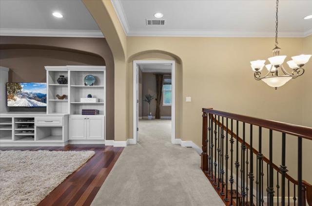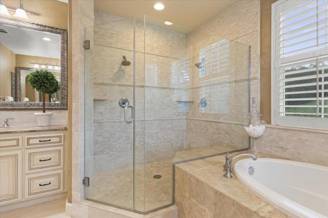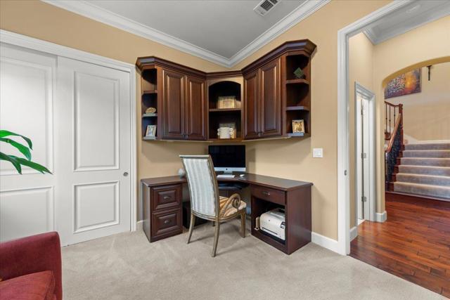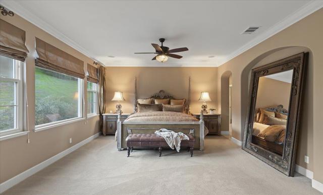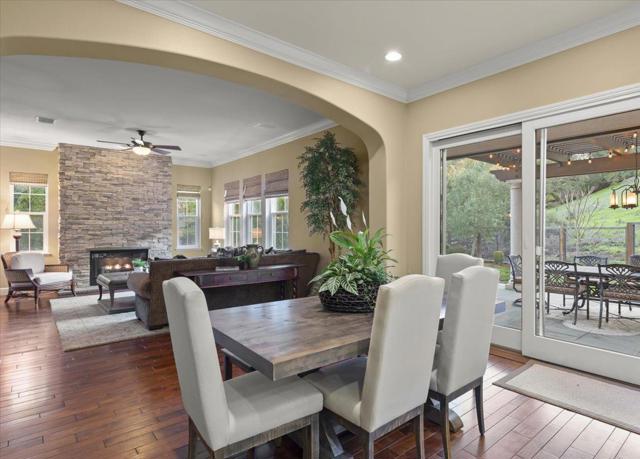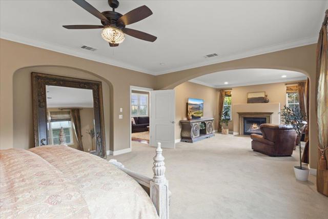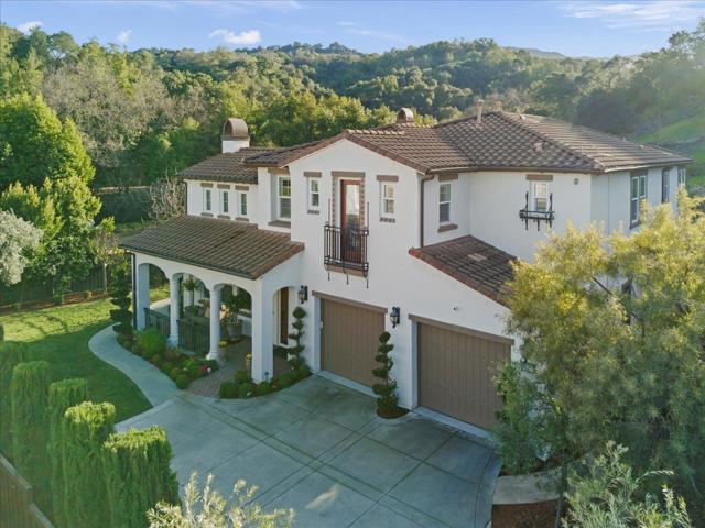This exceptional Summerhill home is on the best lot in the neighborhood, set back from the street, overlooking the beautiful Quicksilver County Park! Blending refined luxury in a private setting, the expansive layout includes a formal living room with silk designer curtains, a formal dining room with a gorgeous French Empire-style chandelier, an open concept kitchen/family room, and a bonus room upstairs. The kitchen is an entertainer's delight with stainless steel, Wolf, Subzero, and Bosch appliances, large island with prep sink, walk-in pantry, butler's pantry with wine fridge and sink. Built-in sound system and outdoor speakers create enjoyable ambiance throughout. The separated primary suite, provides the perfect retreat to unwind with a gas fireplace and seating area. The large ensuite includes a soaking tub and two spacious walk-in closets. Three additional bedrooms with walk-in closets and ensuite bathrooms. Enjoy a peaceful cup of coffee in the sunny, outdoor courtyard with a tranquil fountain. Store your vintage car in the tandem 3rd space in the impressive garage. Owned solar panels and an EV charger provide energy efficiency. A perfect setting that feels worlds away yet remains close to all the conveniences, amenities, and great schools that Almaden Valley offers.