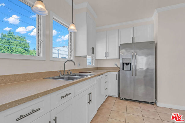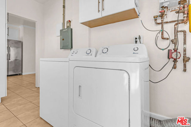 BEAUTIFUL UPPER UNIT DUPLEX IN BEVERLY GROVE. Charming light and bright unit featuring a living room with decorative fireplace, formal dining room perfect for entertaining, spacious upgraded kitchen with stainless steel appliances. Separate laundry room with washer and dryer, and rear door/stairway leading to a private, shared backyard. Two generous bedrooms, both with window AC units, hardwood floors and window treatments. There is also an AC unit in the living room. A private single-car garage is included. With such an ideal location close to the Beverly Center, Third Street shopping and dining, museums and The Grove, this one won't last!