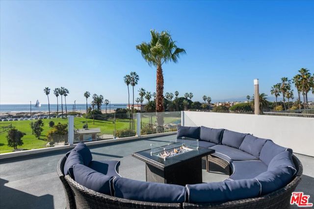 Location, Location, Location! An incredible opportunity to experience California coastal living at it's finest. Fully Furnished and perfectly situated in a premier Playa Del Rey beachside location, this stunning contemporary home captures 360-degree views of the ocean, lagoon, city, and mountains all just steps from the sand. Completely remodeled, this residence blends modern sophistication with a relaxed coastal feel. As you enter the main level, you're immediately embraced by natural light pouring through floor-to-ceiling windows and soaring ceilings. The fresh neutral palette, and open-concept layout create a seamless flow between living, dining, and outdoor spaces all framed by frontal ocean views. At the heart of the home is the brand-new gourmet kitchen, showcasing an oversized Porcelanosa island, custom cabinetry, and top-of-the-line appliances, including a Sub-Zero refrigerator, LG dishwasher, and Thor range. The adjoining formal dining area opens to an ocean-view patio, ideal for enjoying morning coffee or dining al fresco, with stairs leading to your own private, newly turfed yard. The second floor features three spacious bedrooms, including a luxurious primary suite with ocean views, a private balcony, a stone fireplace, and a spa-inspired bath featuring a steam shower and designer finishes. Crowning the home is a private rooftop, reimagined for ultimate entertaining and relaxation complete with a built-in BBQ, wet bar, and 10-seat firepit lounge where you can take in endless sunsets and panoramic views. This home is being offered fully furnished with flexible lease options, making it move-in ready for those seeking a turnkey coastal retreat. Located minutes from LAX, Playa Vista's Runway and Marina del Rey's shops and restaurants, and just steps from Playa Provisions, Bacari, the beach path, and Del Rey Lagoon Park. This is true beach living at its finest.