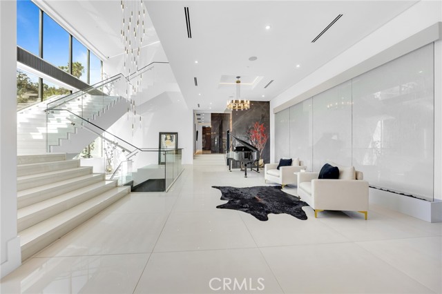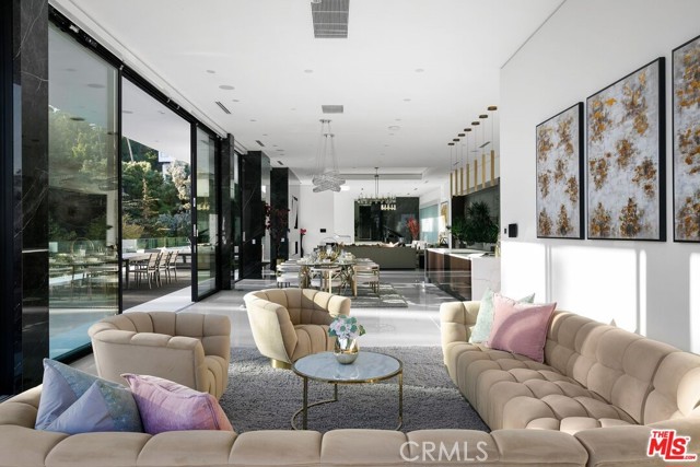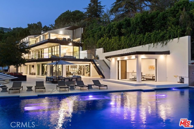 Nestled in the ultra-exclusive "Billionaire's Row" of lower Bel Air, this spectacular, newly constructed estate represents the pinnacle of luxury living or entertaining. This sleek modern oasis offers an unparalleled layout, breathtaking panoramic city views, and every conceivable amenity, all secured within a private and gated setting surrounded by some of the world's most valuable real estate. This estate is designed for grand-scale entertaining and luxurious daily living. The property features a grand ballroom, multiple dens and family rooms, gorgeous formal dining areas, a luxurious media room/screening room with a 4K D-ILA Precision projector, and an indoor bar and lounge. For leisure and wellness, the state boasts a state-of-the-art gym equipped with premium Matrix and Hoist machines, a lavish spa with a sauna, and an Olympic size swimming pool. Automated Fleetwood floor-to-ceiling doors seamlessly blend the indoor and outdoor living areas. This one-of-a-kind property feels like a 7-star hotel and is equipped with multiple kitchens to cater to any need, including separate chef's and preparatory kitchens. These spaces are outfitted with top-tier Miele and Wolf appliances and feature sculpted marble islands. A truly unique feature of the property is its massive subterranean garage, which can accommodate over 50 vehicles, a rarity in Bel-Air. The estate sits on a lot with 320 feet of frontage on Nimes Road and is protected by 8-foot privacy walls and comprehensive security system, offering exceptional exclusivity and peace of mind. No detail has been overlooked. The residence features a commercial Otis elevator, luxurious heated TOTO toilets throughout, and a self-playing Mason & Hamlin piano, adding a touch of whimsical elegance to the formal areas. The home is also a fully realized smart mansion with advanced automation. This trophy estate is more than a home; it is a statement of achievement and a private sanctuary designed for those who demand the very best.