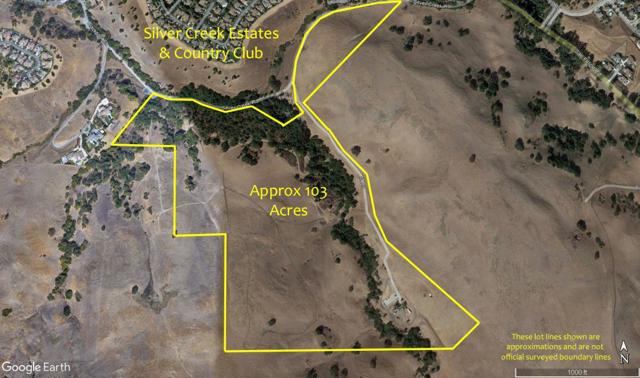 Welcome to the rolling golden hills of Sunrise Ranch. Located adjacent to the hillside estates of prestigious Silver Creek in San Jose, these approximately 103 acres are ready for your ideal ranch estate, family compound, or development project. Feels like a natural retreat away from the stresses of busy San Jose, but abutting the city limits and the greater Silicon Valley. A total of nine separate APN parcels grants many unique options for potential future development. The breathtaking panoramic views from the top parcels are not to be missed. There is already power, septic, and a well which serve a small existing home on the property.