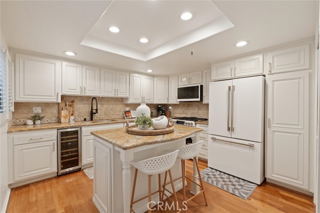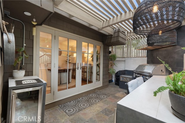Welcome to this exceptional corner residence in the heart of Newport Beach, ideally located near Big Canyon Country Club, Fashion Island, top rated schools, John Wayne Airport, and the 73 Toll Road. Just minutes from the beach and surrounded by some of the best shopping and dining in Southern California, this stylish and architecturally refined home delivers the ultimate coastal lifestyle. The highly desirable floor plan offers privacy, natural light, and thoughtfully designed spaces for comfort and entertaining. The main level features wood flooring throughout, newer dual paned sliding wood doors, and a spacious great room anchored by a cozy gas fireplace. The formal dining area flows seamlessly into the kitchen, complete with a granite prep island, wine refrigerator, and premium appliance package. What truly sets this home apart is the custom outdoor living space. The entertainer’s patio features a fully built out outdoor kitchen with tiled island and bar seating, American Made Grills Estate 42 LP gas grill with infrared sear burner and rotisserie capability, matching power burner, and a 42 inch vent hood. Rich Madera IPE wood cabinetry provides built in storage including double access drawers for LP tanks, trash pull out, and dry storage. A striking 42 inch Kalea Bay tiled fireplace and mounted outdoor TV create a seamless transition from daytime cooking to evening relaxation. Upstairs, the light filled primary suite features soaring ceilings, ceiling fan, and a spacious walk in closet with built in dresser drawers. Step onto your private balcony to enjoy sunset views overlooking the pool. Two additional upstairs bedrooms offer flexibility for guests, family, or a home office, along with a well appointed guest bathroom. Nestled within a gated enclave, the community offers privacy and security, complemented by a beautifully landscaped courtyard and fountain that capture the essence of Newport Beach living. Additional highlights include two side-by-side parking spaces in a secure subterranean garage, with oversized storage cabinets conveniently located behind the spaces for added functionality. If you have been looking for a move in ready home with elevated outdoor living, secure parking, and an unbeatable coastal location, this is it. Schedule your private tour today.