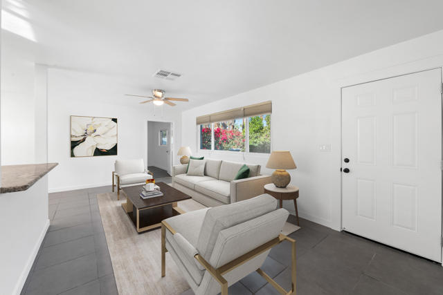 Opportunity is knocking if you are looking for a single family home, in the established Tamarisk neighborhood in Rancho Mirage. South Facing backyard with beautiful South and West Mountain Views and no neighbor behind. This home has been remodeled and is move-in condition. Energy efficient upgrades include the HVAC, Roof/Foam, Dual Pane Solar Windows and sliding doors [with transferable warranty], upgraded electrical panel plus interior and exterior painting. There is a primary bedroom w/en suite, a second bedroom adjacent to the hall bathroom plus a third bedroom with the option for a home office/den or work out area. Easy to maintain tile floor throughout. The lot provides room for a pool/spa, kids or pet play area or sport activities. There is an attached Carport and circular driveway with room for additional vehicles. Centrally located with easy access to restaurants, shopping, hiking, theaters and a 20 minute drive to Palm Springs International Airport. You OWN the LANDThere is NO land lease here. No HOA