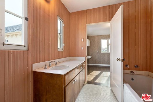 A rare offering on the most prestigious 700 block in the Westend of the Beverly Hills Flats allows a fortunate visitor to step back in time to an era of fine craftsmanship and endless Deco-era details. This spectacular and authentic 2sty 1929 courtyard Spanish is replete with period tilework, fixtures, stenciled ceilings, stained glass, hardware, and uniquely high ceilings. Grand entry foyer with a beautiful staircase featuring amazing riser tiles leads to a huge vaulted beamed stenciled ceiling living room, fabulous formal dining room with stenciled ceiling, lanai, and large family room/conv bedroom with fireplace. A mezzanine balcony on the staircase overlooks the living room for added drama. The lanai opens to the lush grounds with expansive lawns and patio space. Wonderful breakfast room with stenciled ceiling is accessed from the dining room, lanai, and center-isle kitchen. Upstairs you will find 3 immense suites each with balconies, dressing rooms, and original Period baths displaying wonderful circular showers and obligatory stunning tilework. Via a separate stairwell near the kitchen, a guest unit affords 2 bedrooms (or 1 bedroom with an office) and one bath. This guest unit connects through a balcony to the other 3 upstairs bedrooms. Behind the 2-car garage and storage room is a privately accessed guest/bonus/nanny's room and bath. This classic residence with intense Spanish curb appeal is secluded from the road and offers a sense of tranquility just moments from world-renowned shopping, dining, and cultural landmarks including the Waldorf Astoria, Beverly Hills Hotel, Beverly Wilshire, and legendary Rodeo Drive. Cherished by the same family for 52 years, this gem is deservedly ready to be restored to its former glory.