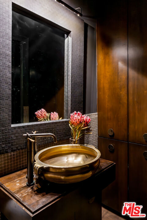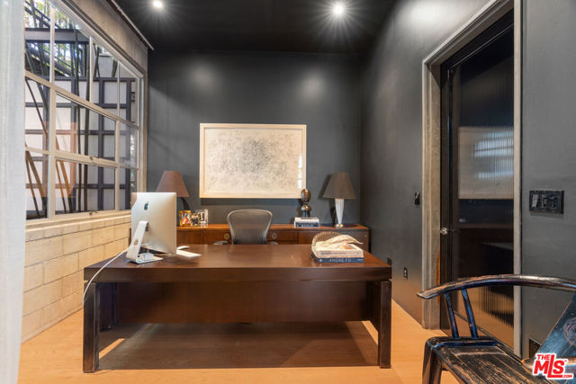 The Lofts at Melrose Place. Discretely located off of West Hollywood's most iconic street, this previously published designer-owned residence places you moments from world-renowned Melrose Place boutiques, cafes, shopping, acclaimed dining and the recognizable Sunday Farmers Market. The setting is a walker's paradise. Located in a prestigious private-ownership building, the property is known for its discretion, strong management and notably low HOA dues. Loft 101 is considered one of the building's most desirable units. Soaring 11.5-foot ceilings create dramatic volume, balanced by a layout that feels both open and refined. It is an entertainer's dream. The interiors have been professionally curated, featuring custom cabinetry, hand-made glass tilework and elegant travertine finishes in the primary bath. Newly refinished white oak floors bring warmth and architectural continuity. Two en-suite bedrooms anchor the floor plan, one styled as a sophisticated home office, while a reimagined service area introduces a pantry, bar and separate laundry room. The spacious primary suite is a perfect sexy retreat. Beyond the interiors, a private terrace overlooks a beautifully landscaped garden. Abundant garage storage and two side-by-side parking spaces complete this polished West Hollywood offering.