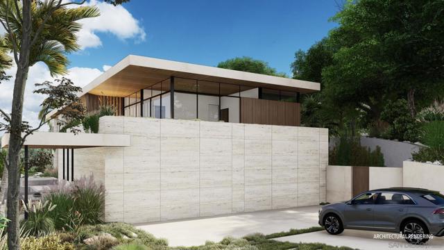 Perched at the pinnacle of Foxhill La Jolla, the proposed home for Lot One is a striking minimalist homage to mid-century modern design. With its clean lines and expansive overhangs, this home pairs timeless elegance with bold travertine surfaces that seamlessly integrate into the natural surroundings. At more than 10,000 square feet, this 6-bedroom, 8.5-bath residence masterfully balances modern sophistication with tranquil warmth. The home’s light, earthy stone reflects the golden hues of the setting sun, accentuating its architectural significance while blending into the serene coastal backdrop. The residence offers 180-degree ocean views at the front and a private nature preserve to the rear, creating a seamless connection between expansive panoramas and intimate tranquility. A front-facing infinity pool mirrors the coastal horizon, enhancing the home’s visual harmony, while a sleek suspended bridgeway connects the living room to a private courtyard and lush lightwell gardens. The simplicity of the home’s form allows the beauty of its materiality and thoughtful outdoor spaces to shine, embodying the very essence of mid-century modern design. The simplicity of the residence planned for Lot 1 allows its materiality and connection to nature to shine, embodying the essence of mid-century modern design, where bold surfaces, sleek lines, and thoughtful outdoor spaces merge seamlessly into one harmonious living experience. The living room opens to both a private courtyard and lush lightwell gardens via a sleek suspended bridgeway. Lot 1’s home plans feature a gym, movie room, and entertainment/bar space, including a back kitchen/pantry and laundry/mudroom, and 4-car garage. Its primary bathroom features double toilets. The lot size is 19,401 SF.