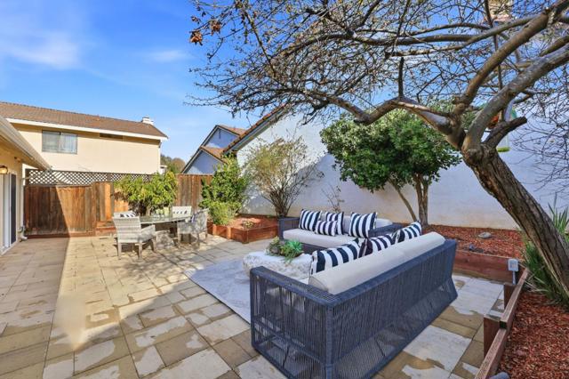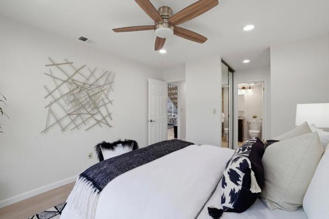 Welcome to this bright and clean home nestled in a desirable pocket of Almaden, located within the highly regarded SJ Unified School District with top-rated nearby schools. A charming tile walkway and pebble stone accented planters lead to the front door beneath a classic tile roof. Inside, vaulted ceilings create an airy feel, while fresh interior paint, recessed lighting, tile flooring throughout the main level, and a cozy fireplace add warmth and style. The kitchen features custom cabinetry, stainless steel appliances, quartz countertops, and bar seating, thoughtfully designed for everyday living. The 3-bed, 2-bath layout offers flexibility, including an upstairs primary suite with walk-in closet and ensuite bath, a downstairs bedroom with its own ensuite and hall access, and an additional guest bed or home office. The peaceful backyard showcases stone pavers and raised planter beds with lush yet low-maintenance greenery, creating a private space to relax and unwind. The 1-car attached garage has epoxy flooring, washer and dryer, interior access through the kitchen, and access to the backyard. Set within a quiet, friendly Almaden neighborhood known for scenic trails and beautiful natural surroundings, this home offers comfort, convenience, and a relaxed lifestyle.