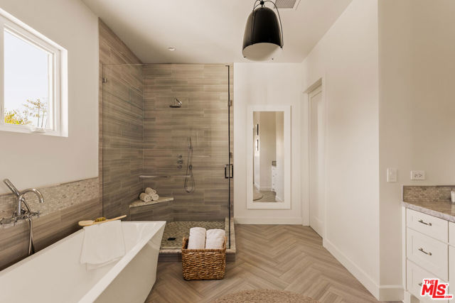 Pristine, elevated, and exquisitely designed, this custom-built 5-bedroom, 5.5-bath estate in Upper North Kentwood defines modern California luxury. Every element of this residence has been thoughtfully curated, blending timeless craftsmanship with contemporary sophistication for those who appreciate beauty in every detail. From the moment you enter, soaring 10-foot ceilings, 8-foot solid wood doors, bespoke moulding, and designer lighting create a grand yet inviting ambiance. Sunlight fills the open-concept living spaces, accentuating fine finishes and a natural flow ideal for both relaxed living and elegant entertaining. At the heart of the home, the chef's kitchen impresses with Carrara marble countertops, an oversized island with prep sink and breakfast bar, and professional-grade Viking, BlueStar and Thermador appliances, including an 6-burner range. A walk-in pantry, beverage refrigerator, and under-counter microwave enhance convenience, while the adjacent breakfast nook - framed by picture windows - invites serene morning moments overlooking the lush backyard. The formal dining room, highlighted by a coffered ceiling and chic dry bar with Carrara marble, sets a sophisticated stage for memorable gatherings. The expansive living room centers around a marble-surround fireplace, offering warmth and refinement, while sliding glass doors open seamlessly to the resort-inspired backyard oasis.Outdoors, the granite-tiled patio leads to a sparkling saltwater pool with an electric cover and tranquil waterfall - all fully remote-controlled for effortless enjoyment. The built-in outdoor kitchen, complete with grill, refrigerator, and sleek countertops, makes entertaining a delight, complemented by an outdoor shower and ambient lighting that elevate every evening. Upstairs, a spacious family room opens to two private balconies with sweeping views of the ocean, mountains, and city lights. Three ensuite bedrooms include a serene primary retreat, where a fireplace-warmed private balcony invites quiet nights under the stars. The spa-inspired bath features dual vanities, a soaking tub, an oversized walk-in shower, and dual walk-in closets - an exquisite sanctuary in the sky. Two additional ensuite bedrooms on the main level provide flexibility for guests or a home office, one with its own washer and dryer, and each adorned with refined finishes and designer lighting. Additional highlights include a pristine two-car garage with custom storage, an under-stair utility closet, exterior security cameras, and an advanced sprinkler system. A freshly painted exterior and updated sewer line to the city connection ensure peace of mind and move-in readiness. Meticulously maintained and masterfully designed, 7324 Westlawn Avenue is a rare offering that embodies elevated living, bespoke luxury and California elegance at its finest - an exceptional residence in one of Westchester's most coveted enclaves.