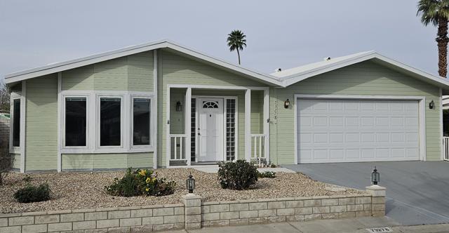 Spacious 2BR + Office, Home with rare 2 car, plus tandem golf cart access garage in Palm Desert Greens - You Own the Land! Welcome to this impressively spacious manufactured home in the sought-after 55+ community of Palm Desert Greens Country Club. Offering 1,920 square feet of comfortable desert living, this home is a rare find with features not often seen in the complex--including an attached 2-car garage with a double-sided golf cart door that opens to the patio. Inside, you will find 2 generously sized bedrooms, 2 full bathrooms, and a versatile home office that functions perfectly as a den, craft room, study, or guest space. Laminate flooring in the main living areas enhances the open-concept layout, while the kitchen and bathrooms feature easy-care tile. A built-in hutch adds charm and additional storage. Windows throughout have Double-Paned Glass with most blinds between the glass. The kitchen comes fully equipped with a new 5 burner cooktop, new double oven, and dishwasher.The primary and guest bedrooms include mounted TVs--move-in ready for your convenience! 6 ceiling fans throughout the home help keep it cool and comfortable year-round. Enjoy seamless indoor-outdoor living with covered patio access from both the living room and primary bedroom sliders--ideal for morning coffee or evening relaxation. There is an abundance of built-in storage, closets and cabinets throughout the home. The HOA fee of just $400/month, which delivers incredible value to include Spectrum cable, high-speed internet, trash service, and unlimited golf on the community's private course. You also have access to tennis and pickleball courts, 24-hour manned gated security, a clubhouse with a restaurant, and 22 active social clubs. For families, there's a kiddie park and pool, perfect for visiting little ones.This home offers the perfect blend of spacious living, privacy, and resort-style amenities, all in one of Palm Desert's most vibrant 55+ communities. Don't miss out on this rare opportunity to enjoy a truly exceptional lifestyle.
