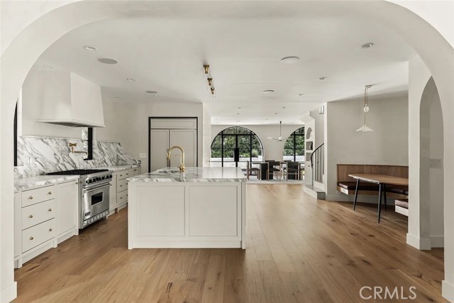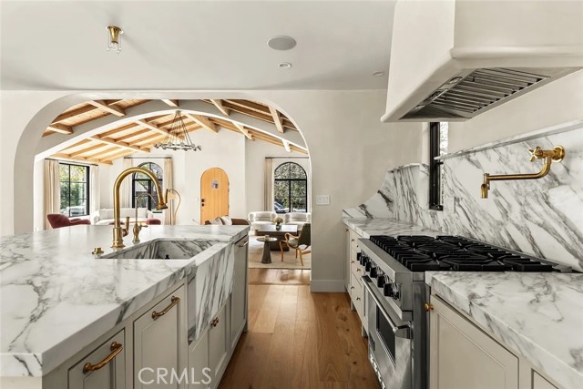 Luxurious Estate in the Heart of Santa Monica Canyon. 5 Bed | 6 Bath | Designer Finishes Throughout. Nestled on one of Santa Monica's most coveted neighborhoods, 738 San Lorenzo St is a stunningly reimagined 5-bedroom, 6-bathroom estate that blends classic California charm with elevated modern design. Every space has been thoughtfully curated with exceptional craftsmanship and style from the dramatic vaulted ceilings in the living room to the rich natural textures and refined lighting throughout. The gourmet kitchen serves as the centerpiece of the home, featuring top-of-the-line appliances, marble countertops, and an oversized island perfect for gathering and entertaining. The formal dining area flows effortlessly into sunlit living spaces and out to beautifully landscaped grounds, ideal for seamless indoor-outdoor living. Five generous bedrooms offer serene retreats, including a spectacular primary suite with custom built-ins and a spa-inspired bath. Each of the six full bathrooms is uniquely designed, featuring sophisticated finishes and striking fixtures that create a sense of luxury in every detail. Located just minutes from the beach, Canyon Charter School, and all the best that Santa Monica has to offer, this is a rare opportunity to live in a design-forward home in an exceptional location.