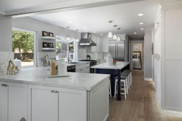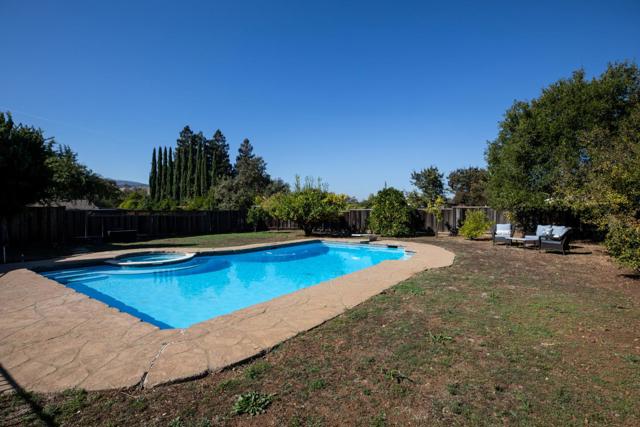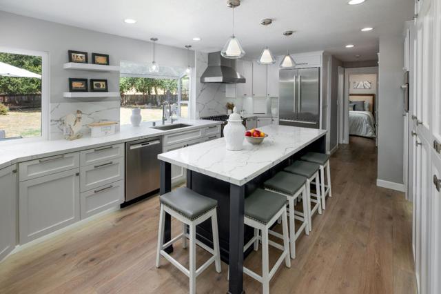 Do not miss this rare blend of privacy, elegance, and convenience with tranquil country living just minutes from the heart of Silicon Valley! This beautifully remodeled 4BD/3BA home offers 2,649 sq ft of stylish country living on nearly an acre of land. A true entertainer's dream, the chef's kitchen features a large island, peninsula, premium appliances, wine/beverage cooler, pantry, and storage. The bright, open layout includes two wood-burning fireplaces, wide-plank French oak floors, Emtek crystal doorknobs, and Swarovski crystal stair spindles. The spacious primary suite includes a walk-in closet, spa-like bath with oversized shower, soaking tub for two, and skylights. One bedroom on the main level. Dual-zone heating + whole-house fan ensure year-round comfort. Outdoors, enjoy a sparkling pool/spa, paver patio & walkways, fruit orchard, raised garden beds, space for expansion or livestock. The large insulated 508 sq ft outbuilding offers endless possibilities, e.g., ADU, workshop, studio, gym, storage, etc. Zoned for horses/livestock, with ample RV/boat parking. Newer 50-year roof, irrigation well + city water, and room for your dream outdoor kitchen or sport court. Top-rated schools, minutes to various hiking trails, biking, Calero Reservoir, golf courses, and vineyards.