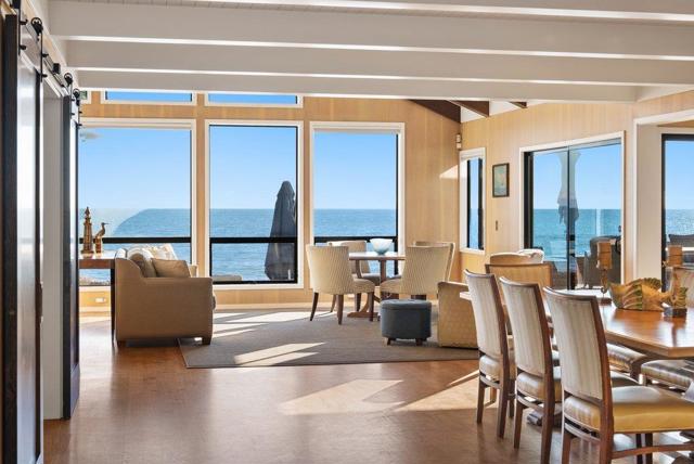 Welcome to 765 Las Olas Drive, a rare opportunity to own a beachfront home in the Seacliff neighborhood of Aptos on one of the most sought-after oceanfront streets in Santa Cruz County. Located behind the private gate of Las Olas Drive, this property offers privacy, direct beach access, and sweeping views of Monterey Bay. Expanded and fully remodeled in 2014, the home blends coastal charm with contemporary comfort. Some upgrades include solar panels and tankless on-demand water heater. Expansive decks extend the living space outdoors, creating the perfect place to relax, entertain, and enjoy the breathtaking views. The living room and kitchen showcase the ever-changing seascape. The primary suite features an en-suite bathroom, walk-in closet, and private patio with views toward Capitola Wharf and Pleasure Point. A 2 car garage, office, and additional living areas provide flexibility for guests or work-from-home needs. The kitchen features high-end Viking and Wolf appliances and a separate adjacent laundry room. Enjoy the fire pit, hot tub, and private staircase leading directly to the sand. An exceptional opportunity to experience the best of Santa Cruz County coastal living.
