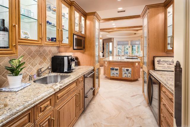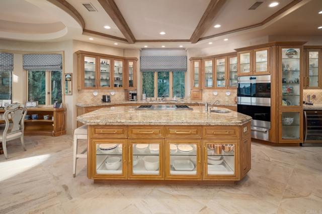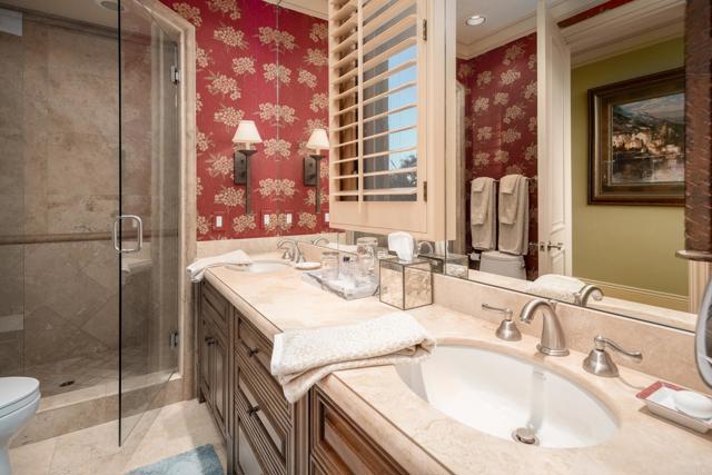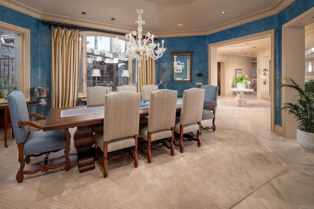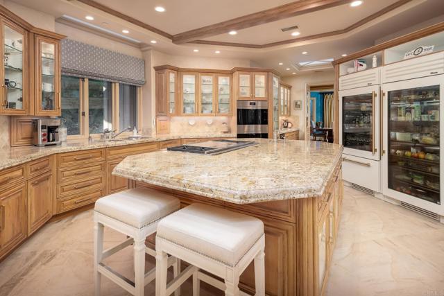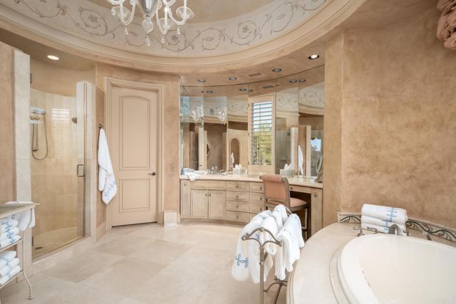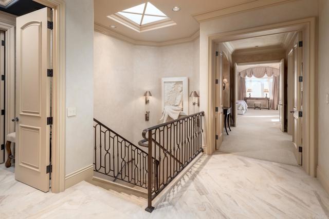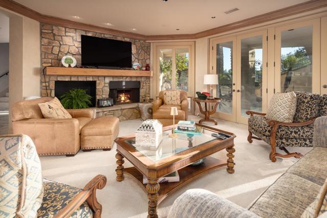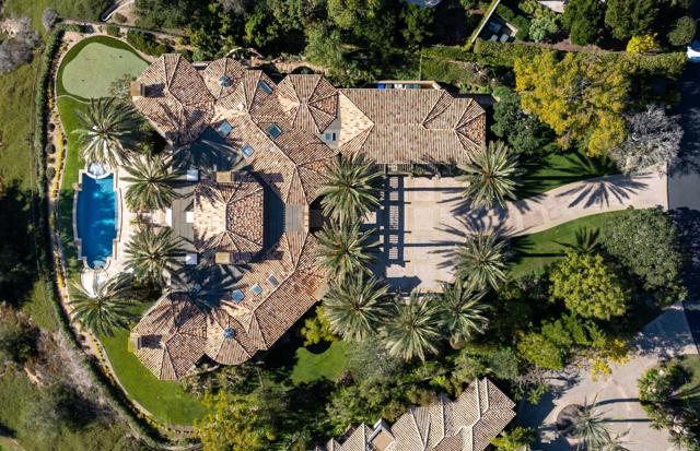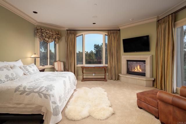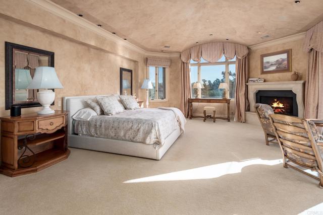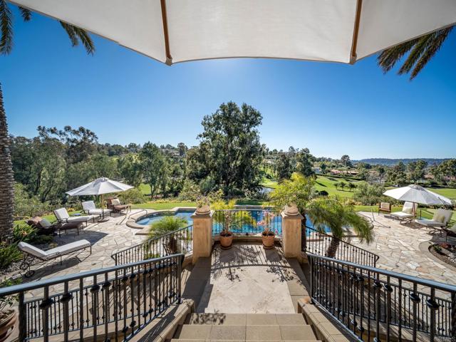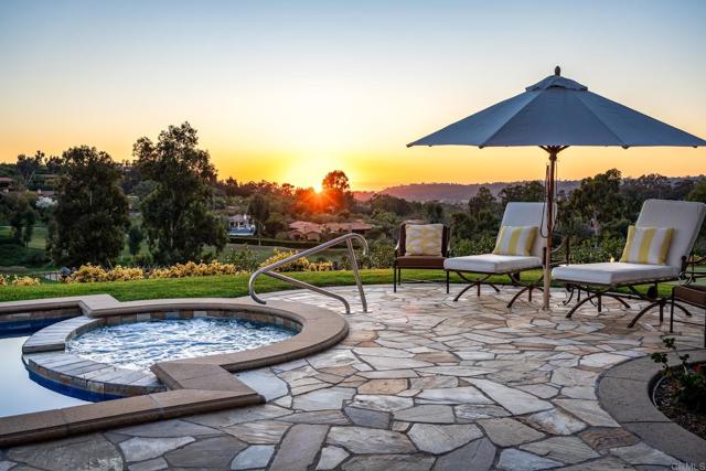 Live the luxury lifestyle on this Premier lot within the gated community of The Farms, one of Rancho Santa Fe's most beautiful, peaceful, private, and picturesque communities. Ideally situated to take advantage of the 270+ degree views of the lush golf course below all the way to the Pacific Ocean. This custom residence features high end finishes and design elements including soaring ceilings, large windows and glass doors allowing for an abundance of natural light, beautiful wood accents while encompassing over 10,000 sq feet of gracious living space. The home exudes elegance and provides the ultimate venue for indoor/outdoor living and entertaining. As you enter the gated courtyard with large wooden gates you feel a sense of beauty and warmth and are mesmerized by the stunning views. The formal living room with stone fireplace and service bar has access to an extensive rear loggia through multiple sets of French doors, which is perfect for entertaining, and for capturing views of the pool, pristine grounds and the views of the golf course, mountains, ocean, and sunsets. There is a large formal dining room and an oversized wood flanked office/library/ game room. The kitchen is a true chef's dream, perfectly detailed with top-of-the-line appliances, crisp slabs of stone, custom cabinetry, large center island, oversized butler’s pantry, and a spacious informal dining area. The kitchen opens to a warm and inviting family room with large media center, fireplace and doors that open to the oversized veranda….the ideal venue for indoor/outdoor dining, entertaining and relaxing. The primary suite comes with fireplace and has dual dressing rooms and bathrooms with French doors leading to a balcony overlooking the sun splashed pool and spa, with ocean and sunset views. There are an additional oversized 4 bedrooms all ensuite, a theatre, gym, second family room with fireplace and bar, wine cellar with room for tasting, secondary kitchen or workshop, sauna and steam shower, outdoor living room with fireplace, putting green, elevator, garaging for 4 vehicles. Furniture is negotiable. Living in the Farms community you can take advantage of all The Farms has to offer with 24 hour guarded security entrance gate, opportunity to join The Farms Country Club and Rancho Valencia Resort. Access to some of the best schools, close to some of the best beaches, restaurants, shopping.