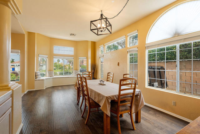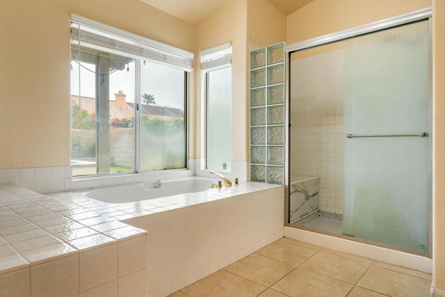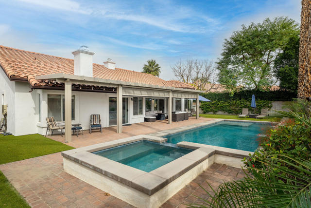 Opportunity meets value in this spacious North La Quinta home offering over 2,300 square feet of comfortable living space and an incredible south-facing backyard designed for relaxation and entertaining.The low-maintenance, drought-tolerant landscaping provides great curb appeal while keeping upkeep simple and efficient. Inside, the home features a blend of ceramic tile, wood laminate, and carpet throughout, creating a warm and functional living environment.The open-concept living room is light and inviting, showcasing vaulted ceilings and a cozy fireplace that flows seamlessly into the kitchen -- ideal for everyday living and hosting guests. The kitchen is well-appointed with stainless steel appliances, Corian countertops, and abundant cabinetry for storage.The spacious primary suite serves as a true retreat, complete with a double-sided fireplace that adds warmth and character to both the bedroom and adjoining bath area. Generous proportions provide plenty of room to unwind comfortably.Step outside to your private backyard oasis featuring desirable southern exposure for optimal sunlight. The Pebble Tec pool and spa create a true resort feel, enhanced by three cascading waterfalls and a tanning shelf perfect for lounging. A large Alumawood patio cover provides ample shade and makes outdoor entertaining effortless year-round. Wind screens add additional comfort and privacy.With size, upgrades, and location all working in your favor, this home represents one of the best values currently available in North La Quinta.
