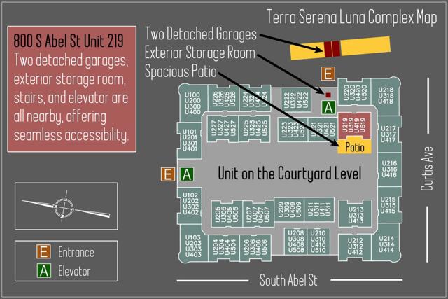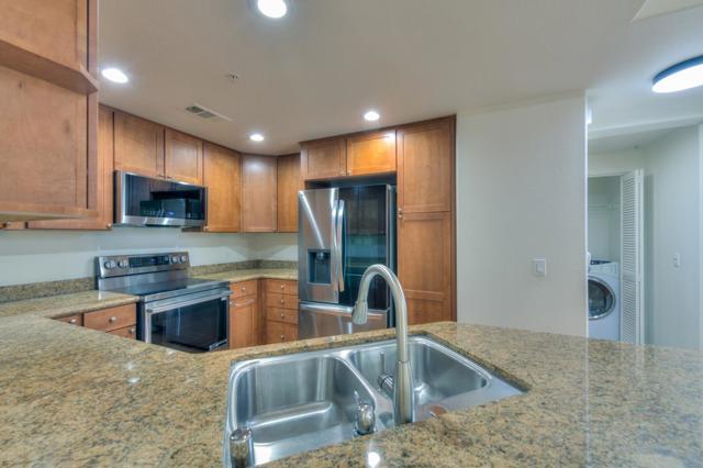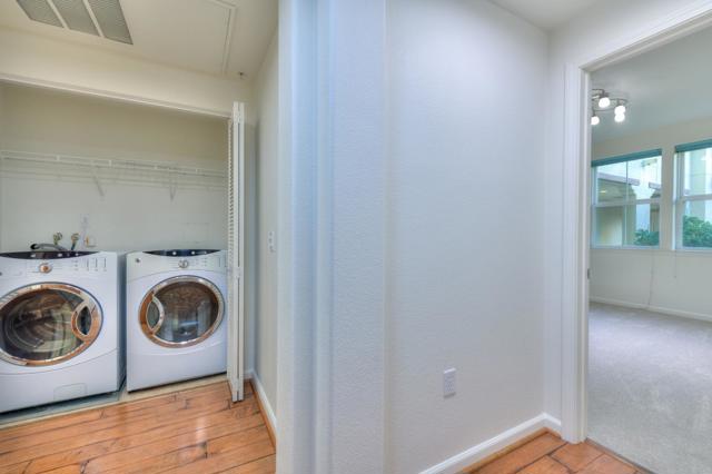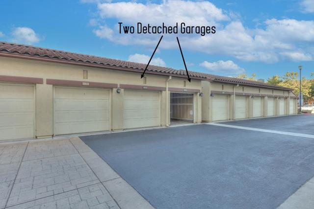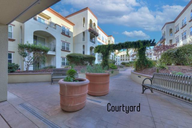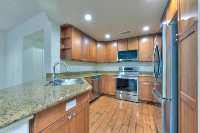 Discover this beautifully upgraded 2-bed, 2-bath, 1,259 sq ft single-level condo, built in 2007 and lovingly maintained by its original owner, located on the serene courtyard level (2nd floor) of the Terra Serena Luna community. No neighbor on one side, the spacious west-facing patio enhanced with lush greenery that offers natural privacy extends your living space and pairs perfectly with the open layout, making it ideal for relaxing, entertaining, and providing a great space for children to play and explore. The spacious primary suite features a walk-in closet, double vanity, soaking tub, and separate shower. Upgrades include stylish engineered hardwood floors, granite kitchen countertops, new carpet, fresh paint, new stainless steel appliances, new energy-efficient LED lights, and new ceiling-mount LED fixtures. Enjoy in-unit laundry, central heat and A/C, two detached private garages, and a nearby exterior storage room. The unit is also just steps from both the elevator and stairs. Community amenities include EV chargers, a clubhouse, gym, pool, jacuzzi, BBQ area, playgrounds, landscaped courtyards, and elevators. HOA dues include water, garbage, and insurance. This condo is within walking distance of the Great Mall, light rail & a nearby park. Some photos virtually staged.