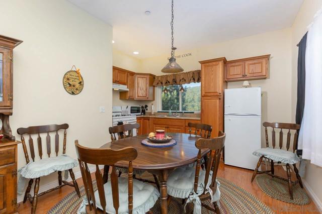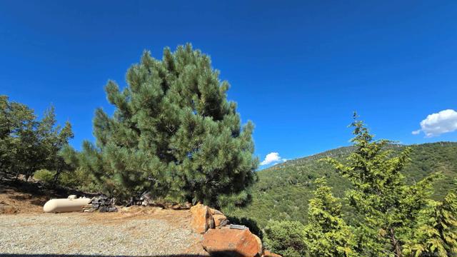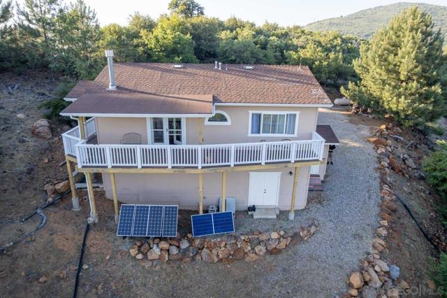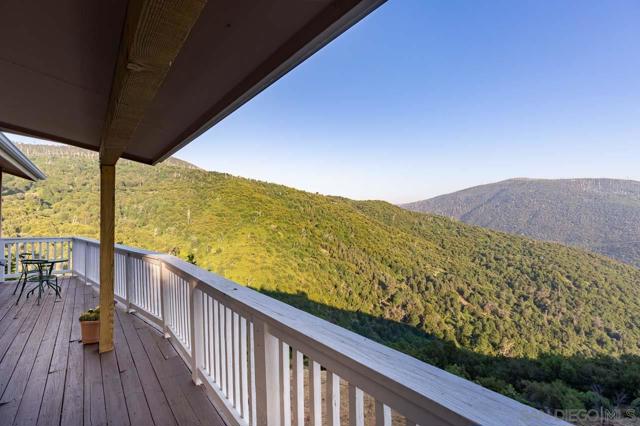 Take a drive past a picturesque lake and up a mountain to a hidden road guarded by an electronic gate. High Hill is like no other off-grid road, with unparalleled views and breathtaking splendor. This home sits on the edge of a hill, surrounded by pine, manzanita, and cedar trees, and seems to float between the peaks. Cuyamaca Woods is an off-grid community with several sections all nestled onto the ridges and bluffs of North Peak in Julian. The High Hill cabin is a well-designed, comfortable, and thoughtfully built 2-bedroom 2-bath home. The home is heated by a Propane wall heater and a wood stove. Cooling winds are frequent each season, and convenient ceiling fans for more circulation on warm days. Step out onto the spacious deck that runs the length of the home and wraps to the entry. Spend time watching graceful hawks glide and hearing the wind through the pines. The full kitchen has a view into the canyon, plenty of storage, and all the amenities to cook up a gourmet dinner for every season. The important details to make mountain life comfortable have been added with owned solar power, a 12,000-watt generator for backup, a private well and 5,000-gallon water tank, as well as a large under-house storage area. *The known Fees associated with this community are through the Cuyamaca Fire Safe Council. *A non-mandatory suggested annual contribution of $125 goes towards maintaining gates and roads.