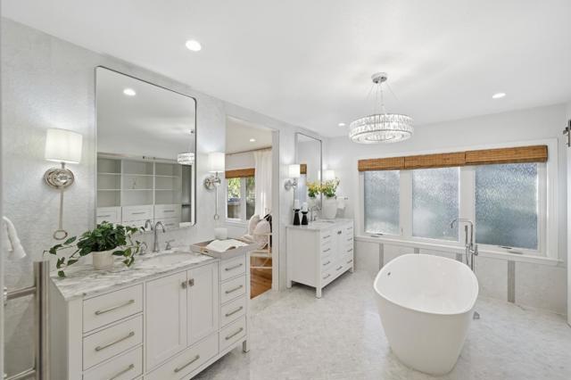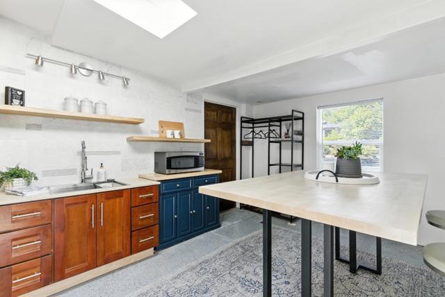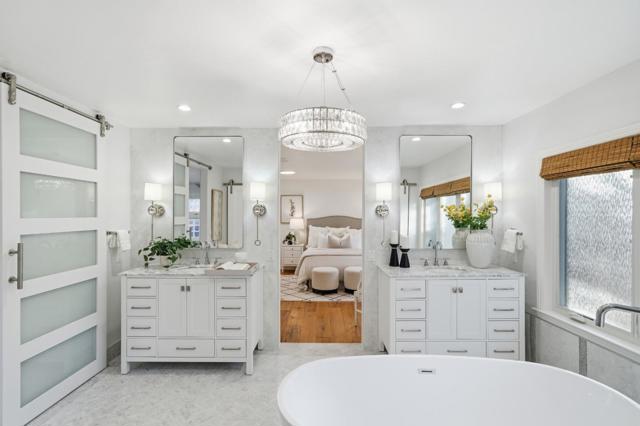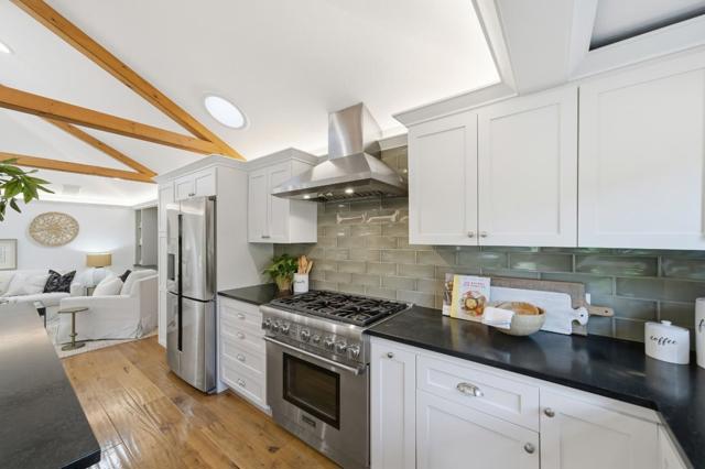 Hidden gem on nearly half an acre behind a private gated entry with professionally landscaped grounds, mature orchard trees, & year-round blooms. The exceptional single-level 3 bedroom, 3 bath 1,842 sqft main residence was completely renovated in 2017 & features an open, light-filled floor plan with skylights & French Oak floors throughout. The entry opens to a spacious living room with custom built-ins & designer lighting, flowing seamlessly into the chef's kitchen with a large center island, Thermador appliances, & dining area. Multiple glass doors open to a stunning 400+/-sq ft lanai, creating effortless indoor/outdoor living. The primary suite retreat with spa-like bath featuring Italian porcelain tile, mosaic marble floors, chandelier, & custom closet. Outdoor living spaces include multiple seating areas, an outdoor kitchen, & gas fire pit, ideal for entertaining year-round. A detached garage offers approx. 687 sqft of flexible space for guest suite or home office, plus an additional 600+/- sqft basement. Additional features include a private well & potential to add an ADU or expand further. Ideally located moments from Village shops & restaurants, hiking & biking trails, Edgewood Park, Stanford University, major tech campuses, & Interstate 280. Excellent Woodside schools.