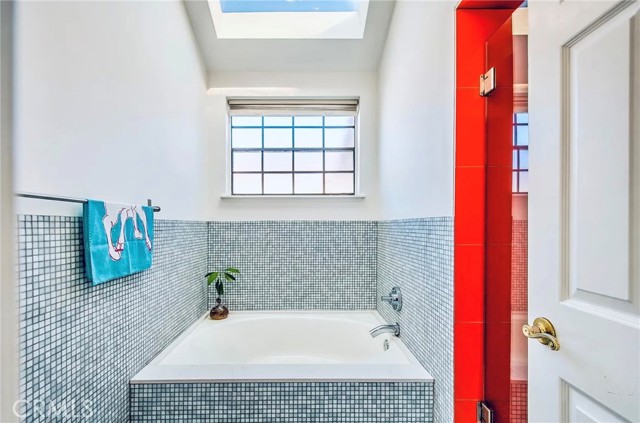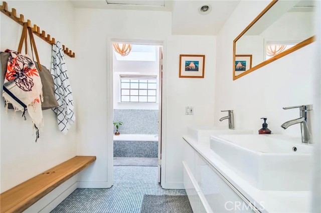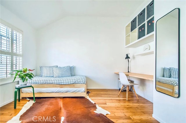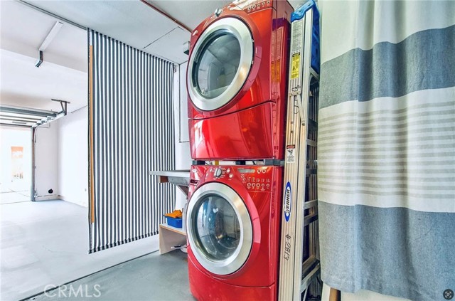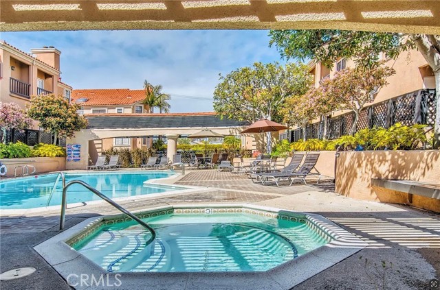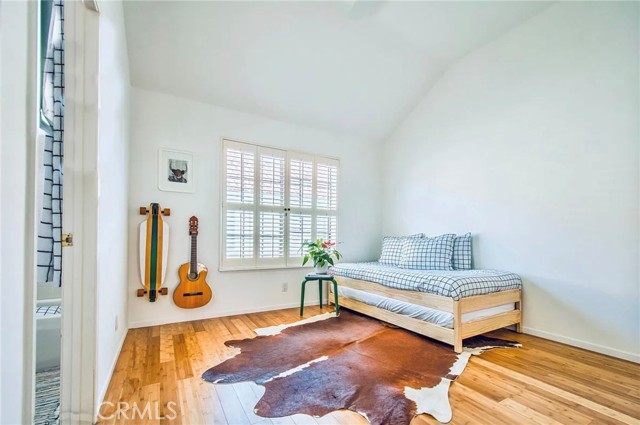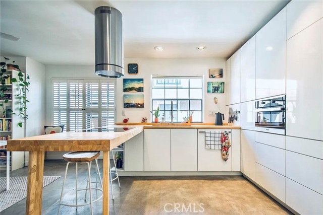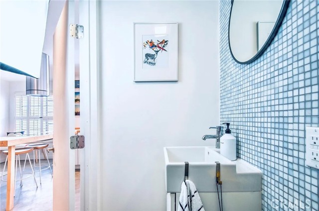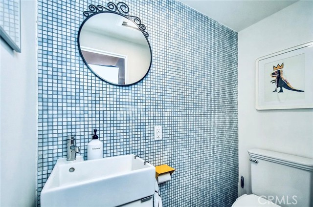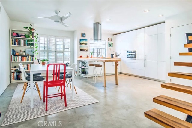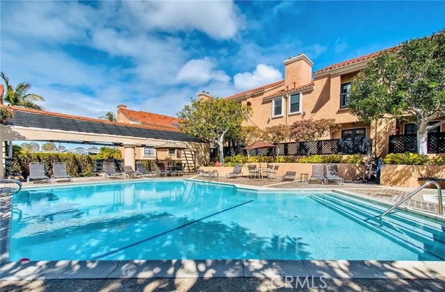 This modern Scandinavian-inspired 2-bedroom, 2.5-bathroom residence offers a refined living experience with thoughtful design, high-end finishes, and seamless indoor-outdoor flow. The open-concept main level features polished concrete flooring, a spacious dining area, and a custom kitchen with hardwood countertops, a seamless induction cooktop, and built-in premium appliances, including a Miele convection oven and microwave, Liebherr refrigerator and freezer, and dishwasher. The living area is designed for both comfort and functionality, featuring wood slat accent walls for enhanced acoustics, wall-mounted cabinetry for ample storage, and a dedicated work area with desk and ergonomic seating. French doors open to a private, shaded patio surrounded by lush greenery and equipped with a barbecue, creating an ideal space for relaxing or entertaining. This level also includes a convenient half bathroom. Hardwood stairs and hallway flooring lead to a well-appointed guest bedroom with built-in desk, wall-mounted bookcase, dresser, and an adjacent full bathroom with shower and tub combination. A few additional steps lead to the private primary suite, which features a vaulted ceiling with ceiling fan, fireplace, spacious closet, and a private balcony overlooking the community pool. The en-suite bathroom is filled with natural light from a skylight and includes dual sinks, wall-mounted storage, a live-edge wood bench, separate shower, and soaking tub. The home is furnished with a curated collection of design-forward pieces from Eames, Emeco, Design Within Reach, contemporary and vintage IKEA, along with custom artwork, creating a cohesive and sophisticated atmosphere throughout. Additional features include a private, attached two-car garage with in-unit laundry, featuring a Whirlpool washer with steam cycle and dryer, along with an adjacent shared storage room. The residence offers direct private access from the patio to the community pool and spa area, which includes landscaped grounds, restrooms, showers, and outdoor seating. The gated community provides a well-maintained and inviting environment, while the home’s location offers convenient access to coastal amenities, John Wayne Airport (SNA), major transportation corridors including the 55, 405, and PCH, as well as shopping, dining, outdoor recreation, and regional attractions.