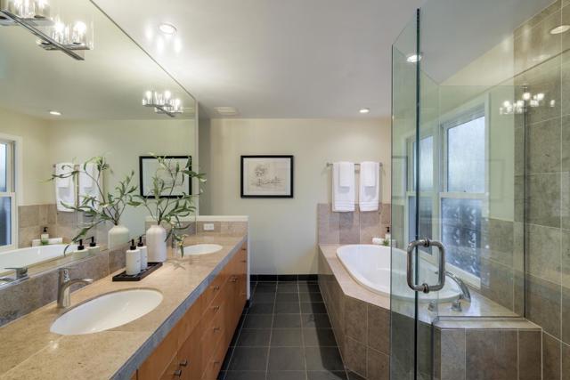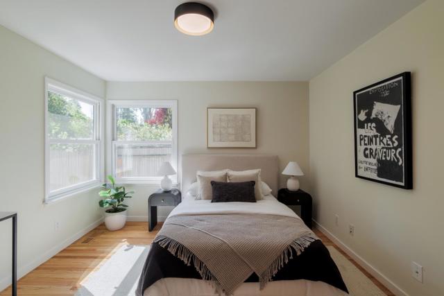 Tucked away at the end of a private lane in Palo Alto's Community Center neighborhood, this home offers a great mix of privacy, comfort, and easy living. Surrounded by mature trees and beautiful landscaping, it feels peaceful and tucked away from it all. Inside, the open layout is filled with natural light, beautiful hardwood floors and updated lighting throughout. The living room is anchored by a striking stone fireplace and flows seamlessly into a well-appointed kitchen with stainless steel appliances and soapstone countertops, perfect for everyday living and entertaining. Just off the living room, a charming patio creates an easy indoor-outdoor connection. The primary suite is a relaxing retreat, featuring a generous walk-in closet and a spa-like bathroom. Nearby, the family room stands out with its high ceilings and sliding glass doors that open to the spacious backyard. Out back, you'll find a sunny, private yard with a lush lawn and patio, ideal for relaxing, hosting, or just enjoying the Palo Alto weather. All of this just minutes from the shops and restaurants on University Avenue and top-rated schools. With its central location, tree-lined streets and abundance of amenities, the Community Center neighborhood remains one of Palo Alto's most desirable places to call home.