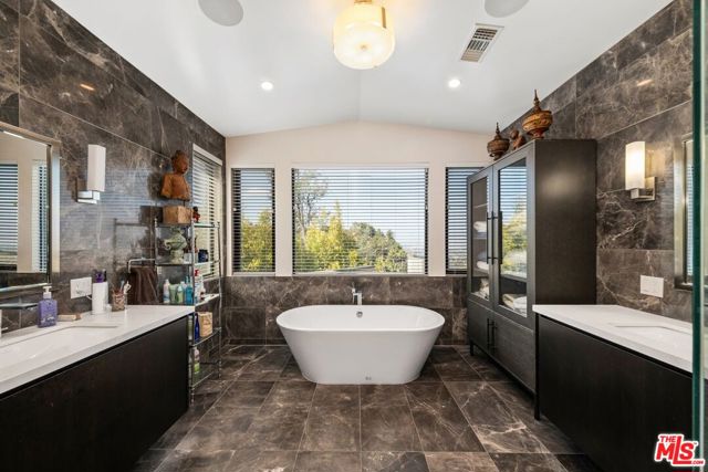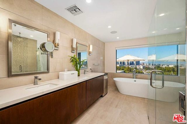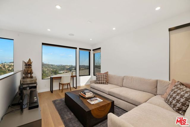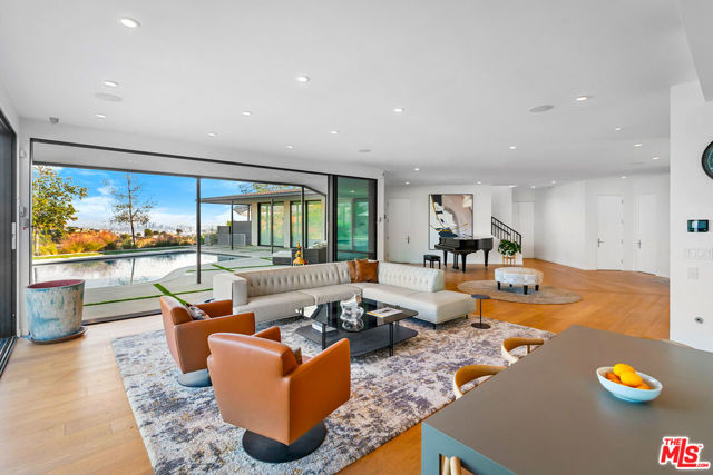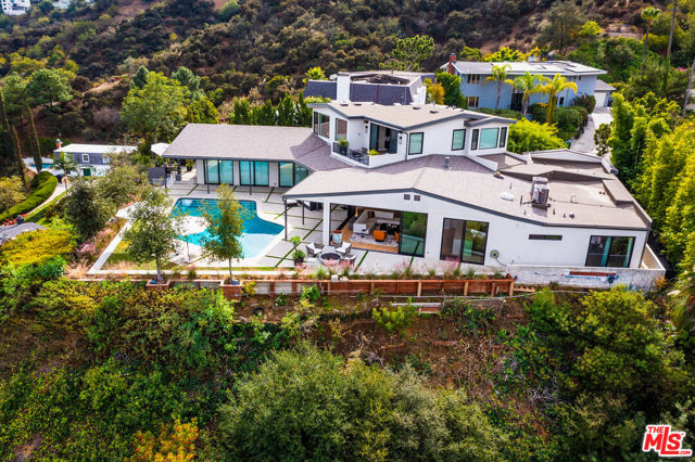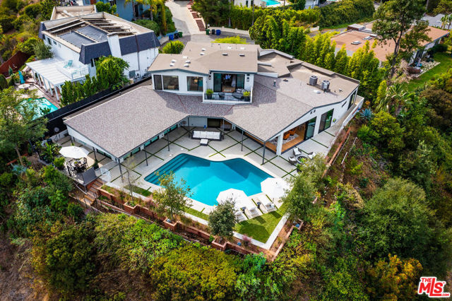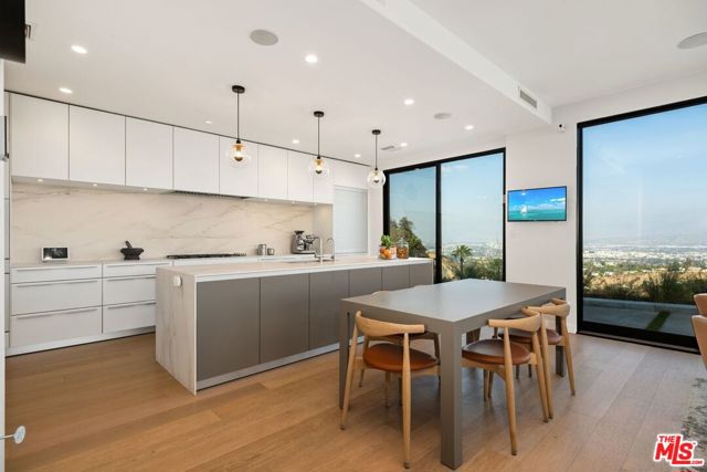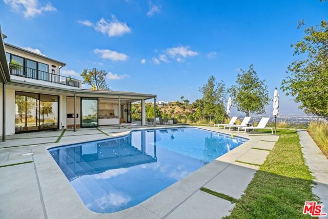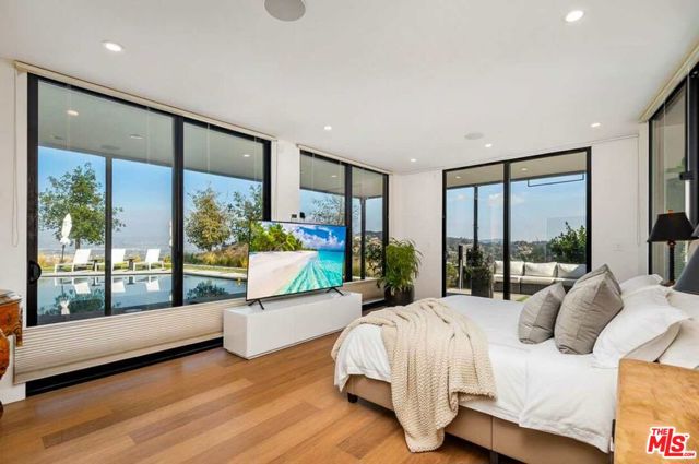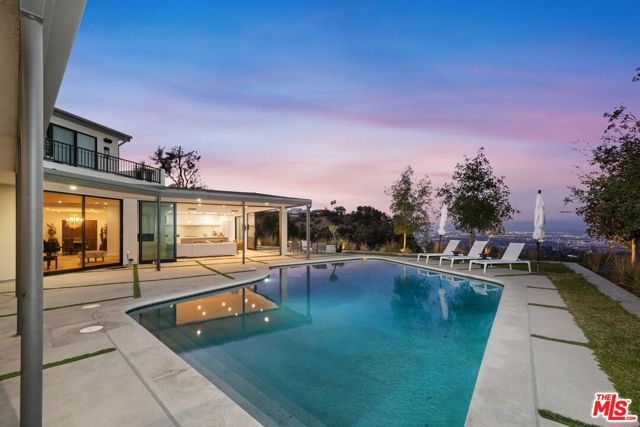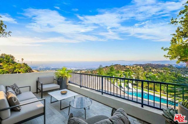 ELEVATED LUXURY WITH VIEWS THAT DEFY EXPECTATION. From the moment you cross the threshold, you are met with an uninterrupted horizon stretching from downtown Los Angeles to the San Fernando Valley and the mountains beyond. Sunlight cascades through walls of Fleetwood glass, guiding you forward as though the views themselves are drawing you deeper inside.The living spaces unfold with effortless flow, each one open yet intimate. Stand in the great room and the city reveals itself in every direction. A few steps more and the line between indoors and outdoors disappears. The pool terrace welcomes lingering afternoons in the sun and evenings illuminated by the city lights below.At the heart of the home, the kitchen is both a showpiece and a gathering place. European cabinetry, beveled Dekton Rem counters, and a suite of Miele appliances invite you to cook, entertain, and enjoy. Every surface and detail reflects careful thought and precision. Two primary suites create the feeling of a five-star resort, each with its own terrace for sunrise or sunset views. Spa-inspired Porcelanosa baths, glass showers, soaking tubs, and generous walk-in closets complete the retreats. The home theater provides a private escape, while integrated smart systems ensure comfort, security, and ease. Set at the end of a quiet cul-de-sac in one of Los Angeles' most coveted hillside enclaves, this residence offers rare privacy within minutes of Beverly Hills and downtown LA. Imagine waking up each morning to this horizon, stepping onto your private terrace, and truly calling this extraordinary residence your home.