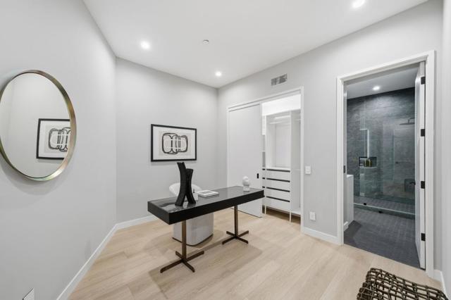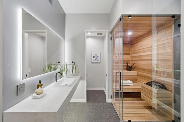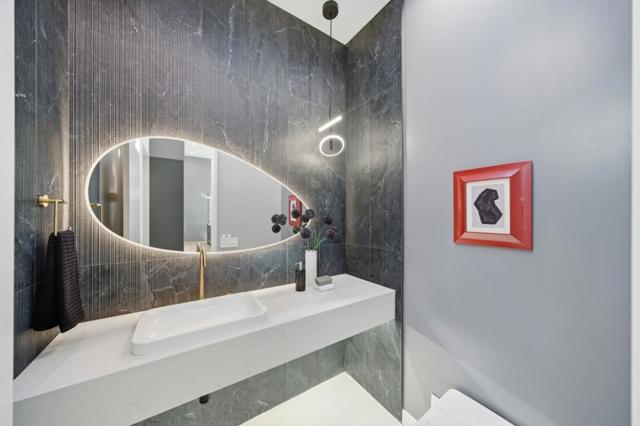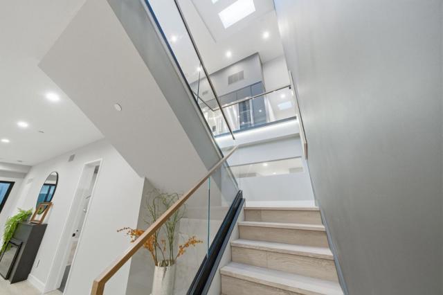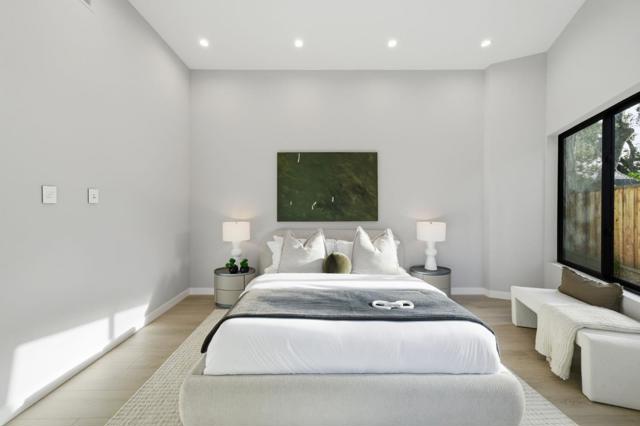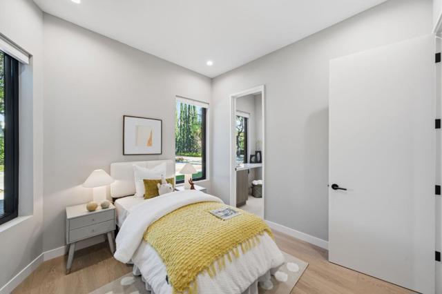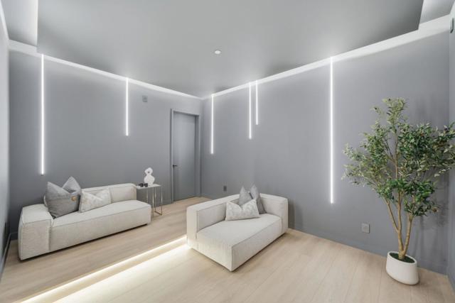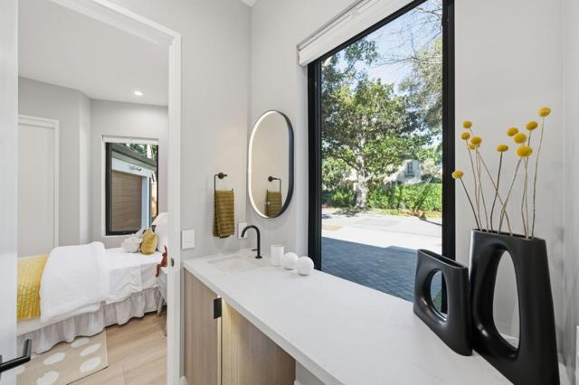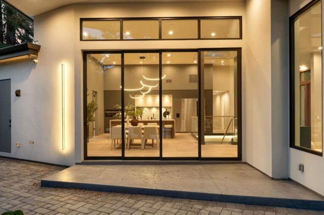 An architectural masterpiece, this stunning modern estate offers 5,213 sq ft of refined living space on an expansive 9,100+ sq ft lot, located in a peaceful, well-connected neighborhood with a strong sense of community. Soaring 15-foot ceilings and walls of glass fill the home with natural light, creating an open and airy feel throughout. The thoughtfully designed floor plan features 5 spacious bedrooms, ideal for multi-generational living, offering privacy and flexibility for adults, grandparents, and children. Designed for both everyday living and entertaining, the home includes a dual-kitchen concept with a wet kitchen and a dry kitchen. Resort-style amenities feature a private sauna and theater room. The designer kitchen showcases Miele appliances, sleek cabinetry, and premium finishes. The low-maintenance landscaped backyard provides a serene retreat, complemented by smart home technology, energy-efficient features, and solar panels. Ideally located near top-rated schools including Palo Alto High School, as well as dining and shopping. A rare offering of quality, design, and location.