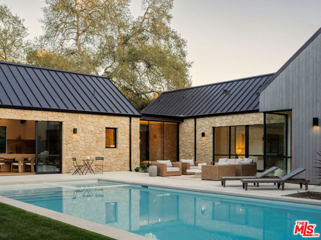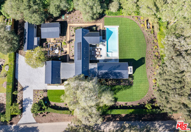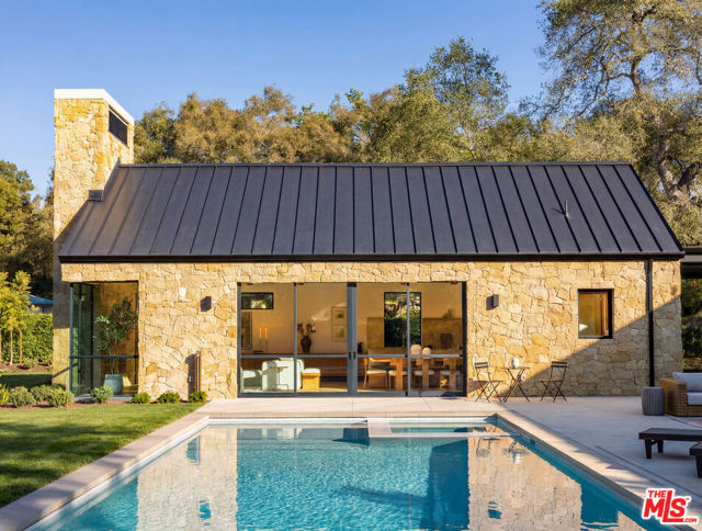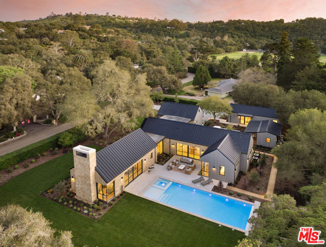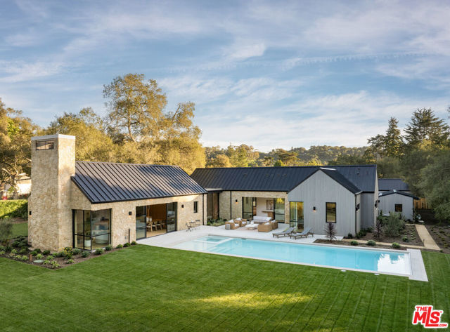 Set on approximately 1.1 flat acres along a serene, walkable Hope Ranch street, this brand new construction, single-level private sanctuary designed by Montecito Ferguson-Ettinger architects, captures the California modern farmhouse essence. The main residence unfolds with 4 bedrooms, each graced with its own ensuite bathroom, while a great room anchored by a Santa Barbara sandstone fireplace invites intimate gatherings. The gourmet Space Theory kitchen, features custom white oak cabinetry, luminous Taj Mahal quartzite, & Thermador appliances for the culinary enthusiast. A private ADU offers gracious hospitality, while a dedicated office/studio building & yoga studio above the 3-car garage provide spaces for creativity & wellness. Outside, a sparkling pool beckons amid meticulously landscaped grounds. Fleetwood doors dissolve boundaries between indoors & out, while Lutron lighting & shades, solar panels, & a standing-seam metal roof reflect thoughtful stewardship. This is Hope Ranch living reimagined.