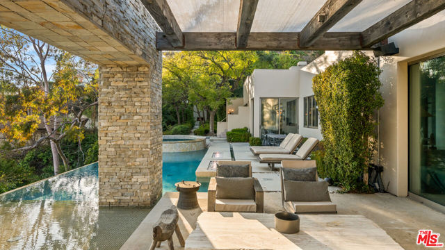 Privately tucked behind gates in the coveted Bird Streets this striking 4 bedroom, 4 bath modern estate spans 4,354 sq ft and showcases breathtaking city views from nearly every main living space. Designed for seamless indoor outdoor living, the home features an expansive open floor plan flooded with natural light, floor to ceiling glass, and refined finishes throughout. Dramatic living and dining areas open directly to a resort-style outdoor oasis with a stunning pool and spa creating the ultimate setting for entertaining or relaxing under the skyline of Los Angeles. Each bedroom is generously proportioned, offering privacy and comfort. The primary suite is a serene retreat with spa inspired bath and luxurious appointments, while additional guest rooms provide flexible space for family, guests, or office use. From day to night, this architectural residence delivers an elevated California lifestyle in one of LA's most prestigious hillside enclaves an entertainer's dream where modern design meets iconic city living.