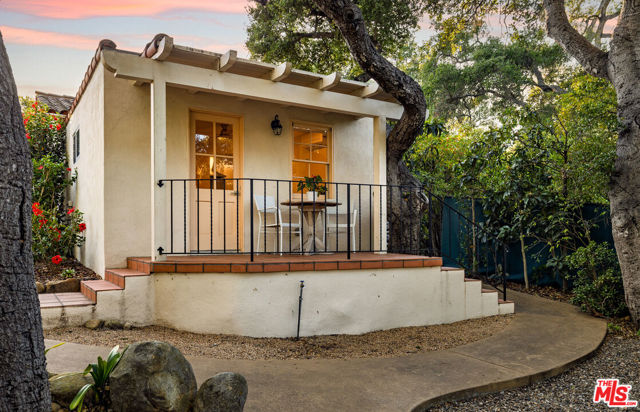Set amid more than an acre of lush Montecito grounds, this refined residence offers a quiet sense of grandeur and an elegant, effortless way of living. A soaring foyer with a sweeping staircase and chandelier welcomes you inside, where tall windows and French doors bring in soft natural light and create a warm, inviting ambiance. The formal living spaces capture the charm of classic Montecito living. A gracious living room, anchored by a traditional fireplace, opens to terraces overlooking the pool and gardensan ideal setting for gatherings of any size. The adjacent dining room and library provide versatile spaces suited for both intimate hosting and peaceful moments at home. The kitchen is bright and thoughtfully designed, featuring an expansive center island, stone countertops, and a wall of windows that frame the gardens. With generous cabinetry and double ovens, it offers a welcoming setting for everyday living and entertaining. Upstairs, each bedroom serves as a private retreat, complete with en-suite baths and balconies that take in tranquil landscape views. The primary suite is especially inviting, offering a sitting area, fireplace, and French doors that open to a romantic veranda. Outdoors, the grounds embrace the best of Montecito's indoor-outdoor lifestyle. A sparkling pool is surrounded by mature oaks, colorful gardens, and patios ideal for relaxation or hosting. A versatile room near the pool offers added comfort and adaptability, ideal for guests or a variety of uses. Combining privacy, charm, and enduring style, this Montecito residence embodies refined living, where comfort and elegance come naturally and each setting enhances the beauty of daily life.
