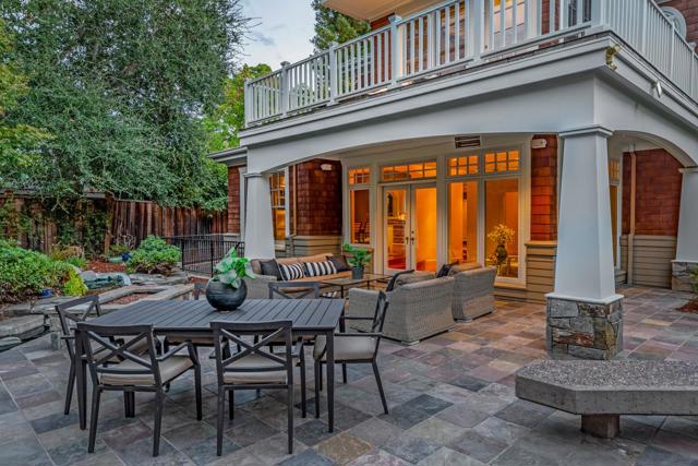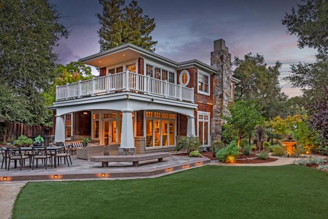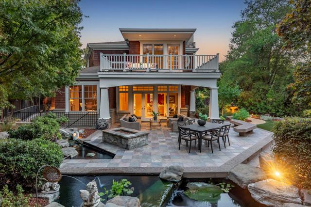 This award-winning residence showcases traditional Cape Cod styling, quality craftsmanship, and impeccable attention to detail around every turn. Custom built and designed to meet the needs of both daily life and large-scale entertaining, this home features 4 bedrooms, 4.5 bathrooms, and 2 offices arranged over three levels. Throughout the home you'll find intricate millwork, gorgeous Australian eucalyptus wood floors, custom light fixtures, and fine stonework. The gourmet kitchen offers an oversized island, Uba Tuba granite, and luxe appliances, and opens directly to the garden-view dining room. The spacious living room has an entire wall of custom cherry wood built-ins, a stately fireplace, and doors to the sun-swept parlor with access to the grounds. Upstairs, the primary suite has a cozy reading nook, a sitting room or nursery, a spa-like bath with a generous walk-in closet, and access to two large balconies. On the lower level you have a spacious family room, a home office, and a bedroom suite ideal for guests. Your serene outdoor retreat stuns with eco-friendly ponds and cascading waterfalls, a fire pit patio, spa, and professionally landscaped gardens. A tranquil escape that feels worlds away, yet just minutes from downtown, top schools, and the heart of Silicon Valley.