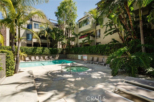 Welcome to this spacious 1-bedroom, 1-bath corner unit in the prestigious The Courtyards. 793 sq ft of open living with hardwood floors, modern decorative stone fireplace, in-unit laundry, and a huge balcony with access from living, dining, and bedroom. The open kitchen features stainless steel appliances, quartz counters, and designer tile backsplash. Bathroom and bedroom are updated with luxe finishes and plenty of closet space. Central air keeps it comfy year-round. One covered parking with elevator access is included. The Courtyards offers beautifully landscaped grounds, a recently renovated pool and hot tub, gym, sauna, security patrol, club room, water, central AC, and on-site management. Live just steps from the best of West Hollywood: trendy cafes, top restaurants, boutiques, nightlife, and everything that makes this neighborhood the most desirable places to call home. Perfect as a primary residence or investment opportunity. Schedule your showing today!