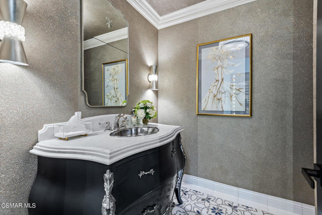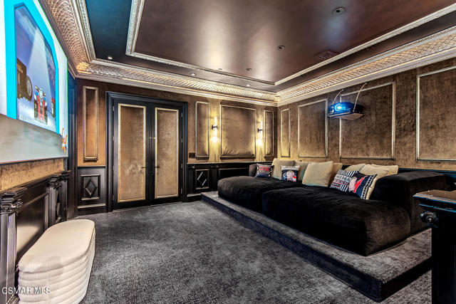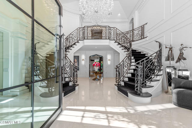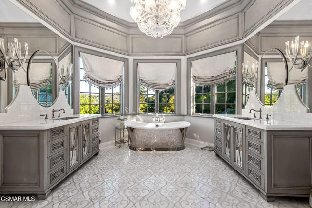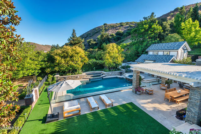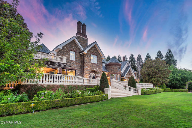 World Class Landmark Estate in guard gated North Ranch Country Club Estates ! Exquisite and completely re-imagined contemporary English Manor with panoramic fairway and mountain views! Designed and built with unparalleled quality, detail, and craftsmanship. Absolutely magnificent! Interior features include a grand two story entry with sweeping dual staircases, state of the art home cinema, billiard/game room, all new walk in wine cellar, and so much more. No detail or expense was spared to artistically craft this one of a kind showplace. The resort quality grounds are remarkable. Custom pool and spa, fireplace, outdoor kitchen, formal gardens and lush manicured lawns. All with total privacy and views! Other important features include privately gated entry, garages for 6 cars, a detached office with guest house above with separate entrance. There is also another detached guest/pool house with adjacent catering kitchen. One of Southern California's most epic custom masterpieces!